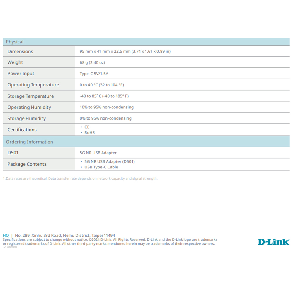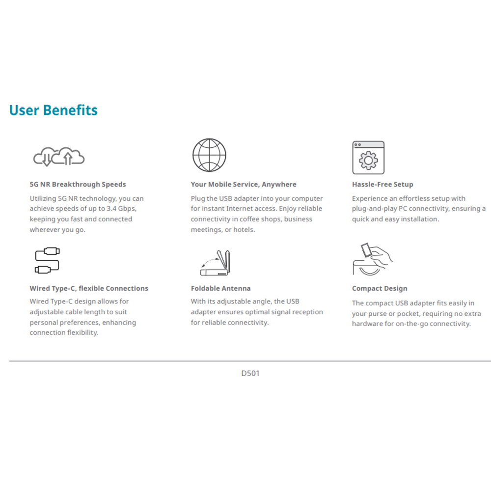 昌運監視器 D-LINK 友訊 D501 5G NR USB 轉接器