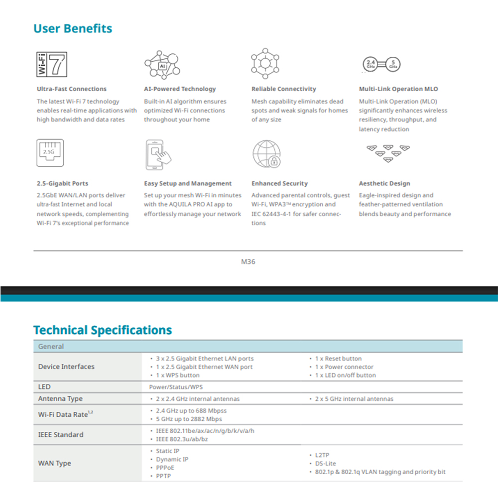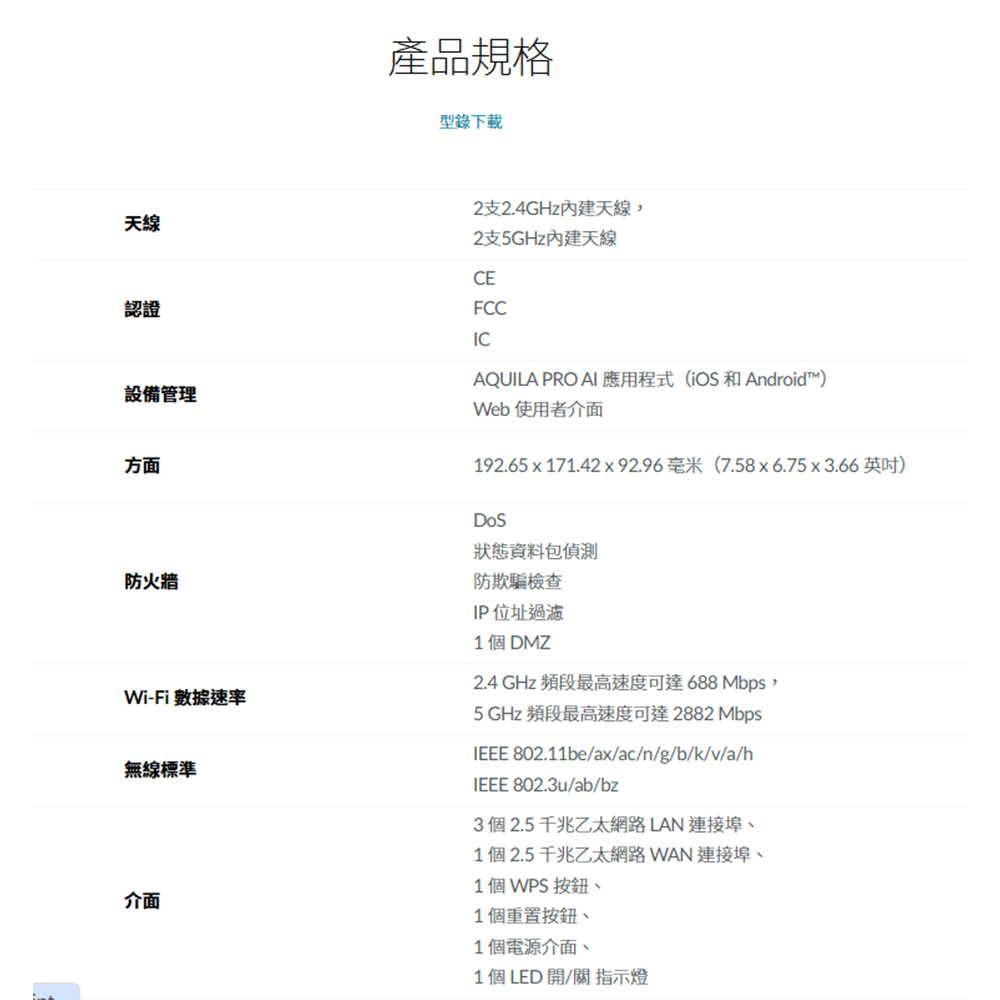 -Mesh連網 : 透過新增AQUILA PRO AI系列路由器或延伸器,輕鬆打造全屋覆蓋的Mesh網路。