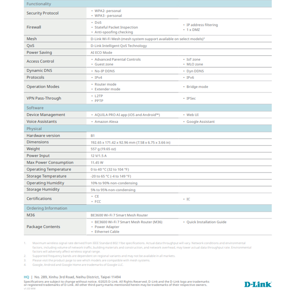 昌運監視器 D-Link 友訊 M36 BE3600 Wi-Fi 7無線MESH路由器