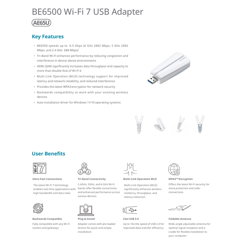 D-LINK 友訊 AE65U BE6500 Wi-Fi 7 USB Dongle 三頻無線網卡 昌運監視器