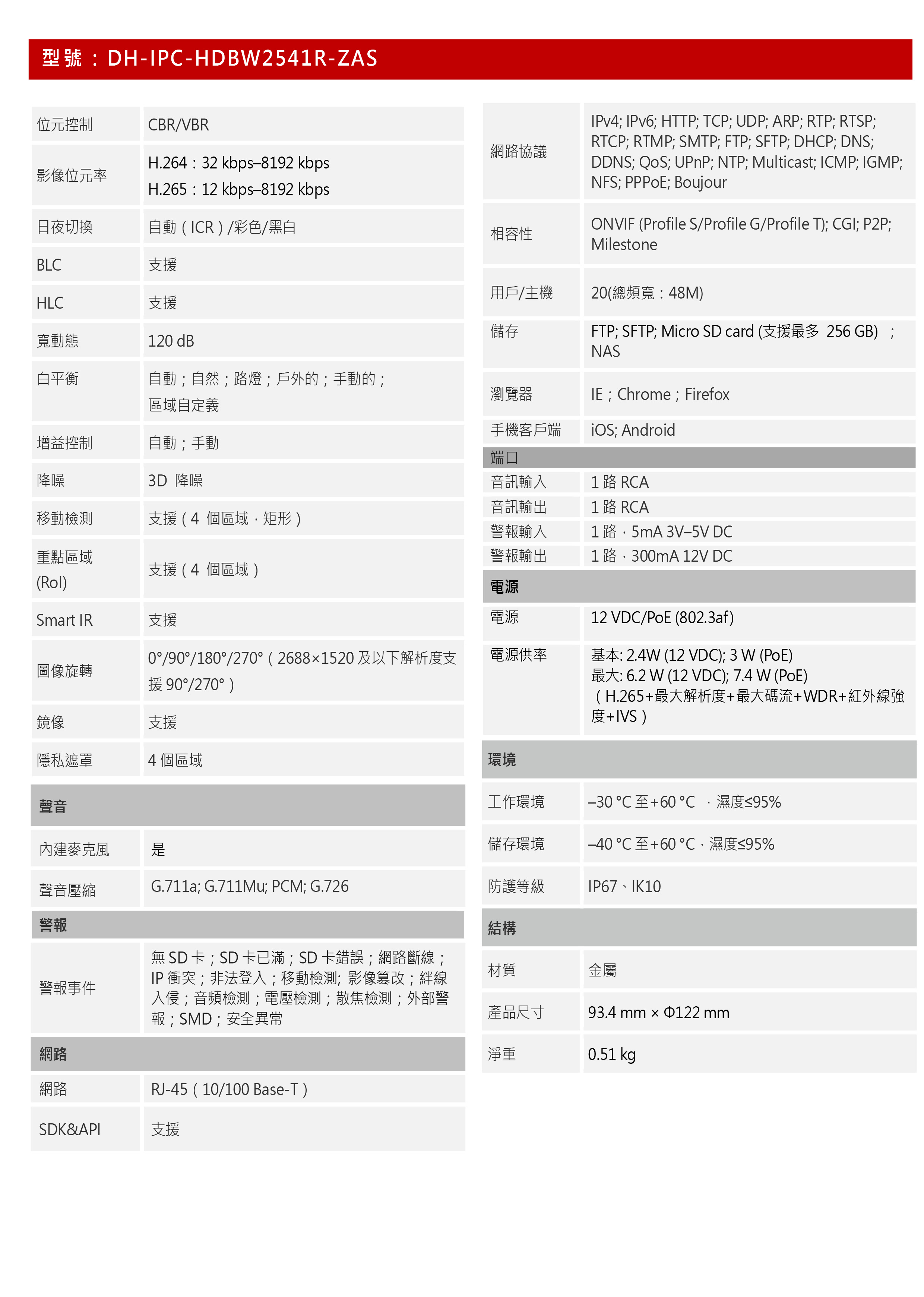 ROI,智能 H.264+ / H.265+靈活編碼,適用各種頻寬和儲存環境旋轉模式,WDR,3D NR,HLC,BLC,浮水印