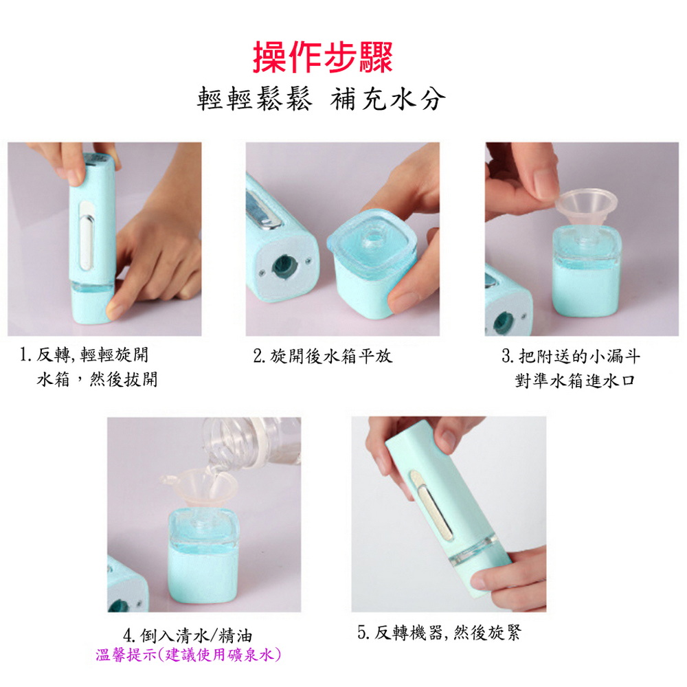 《商品介紹》奈米霧化水分子 潤濕肌膚攜帶方便 隨時使用霧化水分子,吸收快速可在汽車使用,去除汽車異味,保持清新在乾燥地方,保濕肌膚保濕保養,身心愉悅好心情時尚設計,精美實用