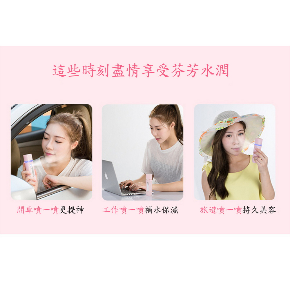 《商品介紹》奈米霧化水分子 潤濕肌膚攜帶方便 隨時使用霧化水分子,吸收快速可在汽車使用,去除汽車異味,保持清新在乾燥地方,保濕肌膚保濕保養,身心愉悅好心情時尚設計,精美實用