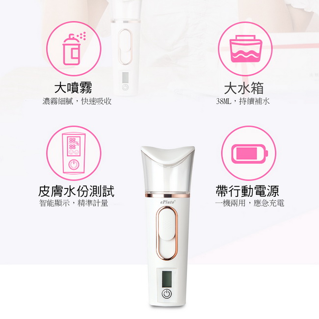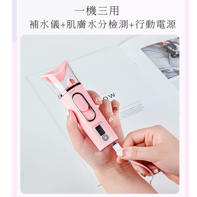 《商品介紹》奈米霧化水分子 潤濕肌膚快速檢測肌膚水份攜帶方便 隨時使用霧化水分子,吸收快速在乾燥地方,保濕肌膚保濕保養,身心愉悅好心情時尚設計,精美實用一機3用,高CP值奈米霧化水分子 潤濕肌膚補充肌膚水份,芬芳療癒可以檢測肌膚水份含量,立即補充水份外出緊急對手機充電霧化水分子,吸收快速清新涼快,瞬間降溫在乾燥地方,保濕肌膚保濕保養,身心愉悅好心情時尚設計,精美實用