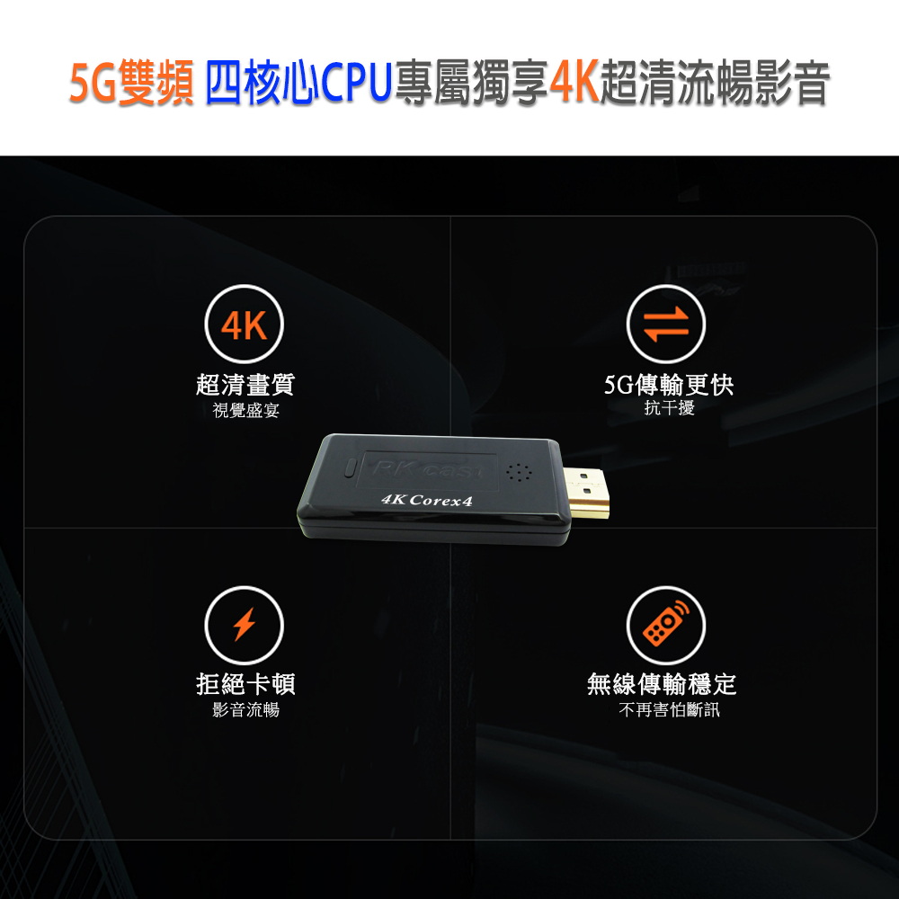 【第十代4K四核心】飛行者RKcast雙頻5G全自動無線影音鏡像器(附4大好禮)