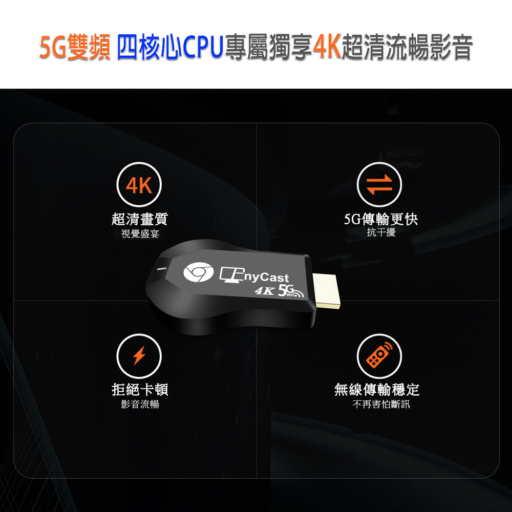 【第十代AnyCast四核心4K款】超清高速雙頻5G全自動無線影音鏡像器(附4大好禮)