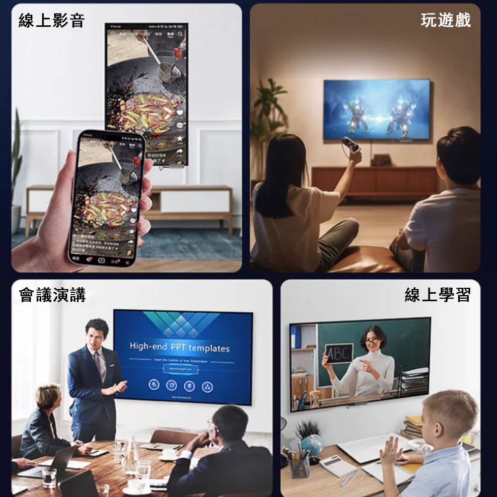 《商品特色》真正高畫質無線影音傳輸支持H.265高畫質無線投影操作簡單 影音投影■支援4K(3840×2160)超高清畫質■免安裝任何軟體■無線連結,影音同步分享■支援蘋果/安卓/電腦無線投影顯示■可電腦直接電視同步顯示■支持Airplay/Miracast/WIDI/DLNA影音同步傳輸模式《商品介紹》隨著智慧型裝置普及,手機、平板、電腦已成為日常不可或缺的工具。但螢幕太小往往影響學習與娛樂體驗。現在,只要一個 無線投影器,就能輕鬆將螢幕畫面同步到電視或投影機,大螢幕享受更清晰、更震撼!隨插即投:操作簡單,免驅動免APP。跨平台支援:支援 iOS / Android / Windows / Mac OS。高畫質輸出:清晰畫質 ,清晰不卡頓。穩定傳輸:低延遲設計,影音同步。輕巧便攜:出差、上課、居家,一機搞定。【應用場景】居家娛樂:追劇、看電影,大螢幕更沉浸。遊戲對戰:手機秒變遊戲主機,刺激加倍。教育教學:課堂同步投影,互動更生動。會議簡報:商務展示更專業,告別繁瑣連線。汽車導航:手機地圖投影到大螢幕,安全又直觀。《注意事項》1.如果要使用在汽車的螢幕投影,請先確認汽車是否有HDMI或AV影音輸入,請確認後再進行購買。2. 本商品是HDMI影音傳輸介面,如果是汽車是AV(黃白紅三色插孔)則需要另外自行準備HDMI轉AV的轉換器才可以使用。《商品配備》無線影音鏡像傳輸器 x1WiFi模組線x1說明書 x14大好禮: USB充電器x1 + HDMI傳輸線x1 + HDMI母對母轉接頭x1 + 手機支架x1《商品規格》廠牌: Dawise型號: 第10代WD67顏色: 黑支援的設備: 蘋果,安卓,微軟裝置支援影音同步傳輸模式: AirPlay/Miracast/DLNA/WIDIUSB供電(DC+5V)HDMI連接電視產地: 中國大陸產品保固: 主機保固3個月,配件/贈品保固1個月,保固範圍不包含人為損壞。《NCC認證字號》CCAJ14LP398GT9