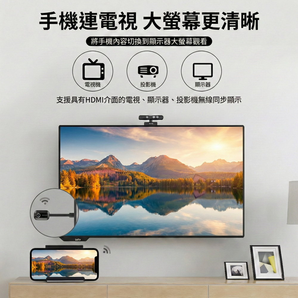 《商品特色》隨時隨地 大螢幕娛樂操作簡單 影音投影■一機多用,教學/娛樂/導航全搞定■免安裝任何軟體■無線連結,影音同步分享■支援蘋果/安卓/電腦無線投影顯示■可電腦直接電視同步顯示■高畫質輸出,高速穩定傳輸《商品介紹》隨著智慧型裝置普及,手機、平板、電腦已成為日常不可或缺的工具。但螢幕太小往往影響學習與娛樂體驗。現在,只要一個 無線投影器,就能輕鬆將螢幕畫面同步到電視或投影機,大螢幕享受更清晰、更震撼!隨插即投:操作簡單,免驅動免APP。跨平台支援:支援 iOS / Android / Windows / Mac OS。高畫質輸出:清晰畫質 ,清晰不卡頓。穩定傳輸:低延遲設計,影音同步。輕巧便攜:出差、上課、居家,一機搞定。【應用場景】居家娛樂:追劇、看電影,大螢幕更沉浸。遊戲對戰:手機秒變遊戲主機,刺激加倍。教育教學:課堂同步投影,互動更生動。會議簡報:商務展示更專業,告別繁瑣連線。汽車導航:手機地圖投影到大螢幕,安全又直觀。《注意事項》1.如果要使用在汽車的螢幕投影,請先確認汽車是否有HDMI或AV影音輸入,請確認後再進行購買。2. 本商品是HDMI影音傳輸介面,如果是汽車是AV(黃白紅三色插孔)則需要另外自行準備HDMI轉AV的轉換器才可以使用。《商品配備》無線影音鏡像傳輸器 x1USB充電器 x1說明書 x1《商品規格》廠牌: Dawise型號: 10代WD06顏色: 黑支援的設備: 蘋果,安卓,微軟裝置支援影音同步傳輸模式: AirPlay/Miracast/DLNA/WIDIUSB供電(DC+5V)HDMI連接電視產地: 中國產品保固: 主機保固3個月,配件/贈品保固1個月,保固範圍不包含人為損壞。《注意事項:》產品顏色可能會因為相機拍照色偏因素而有差異,請以實際出貨為準。《NCC認證字號》 CCAJ15LP0250T3