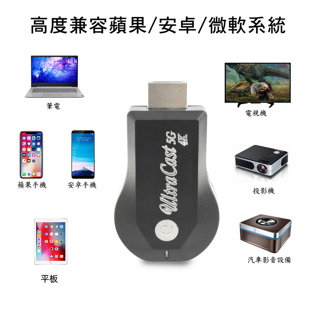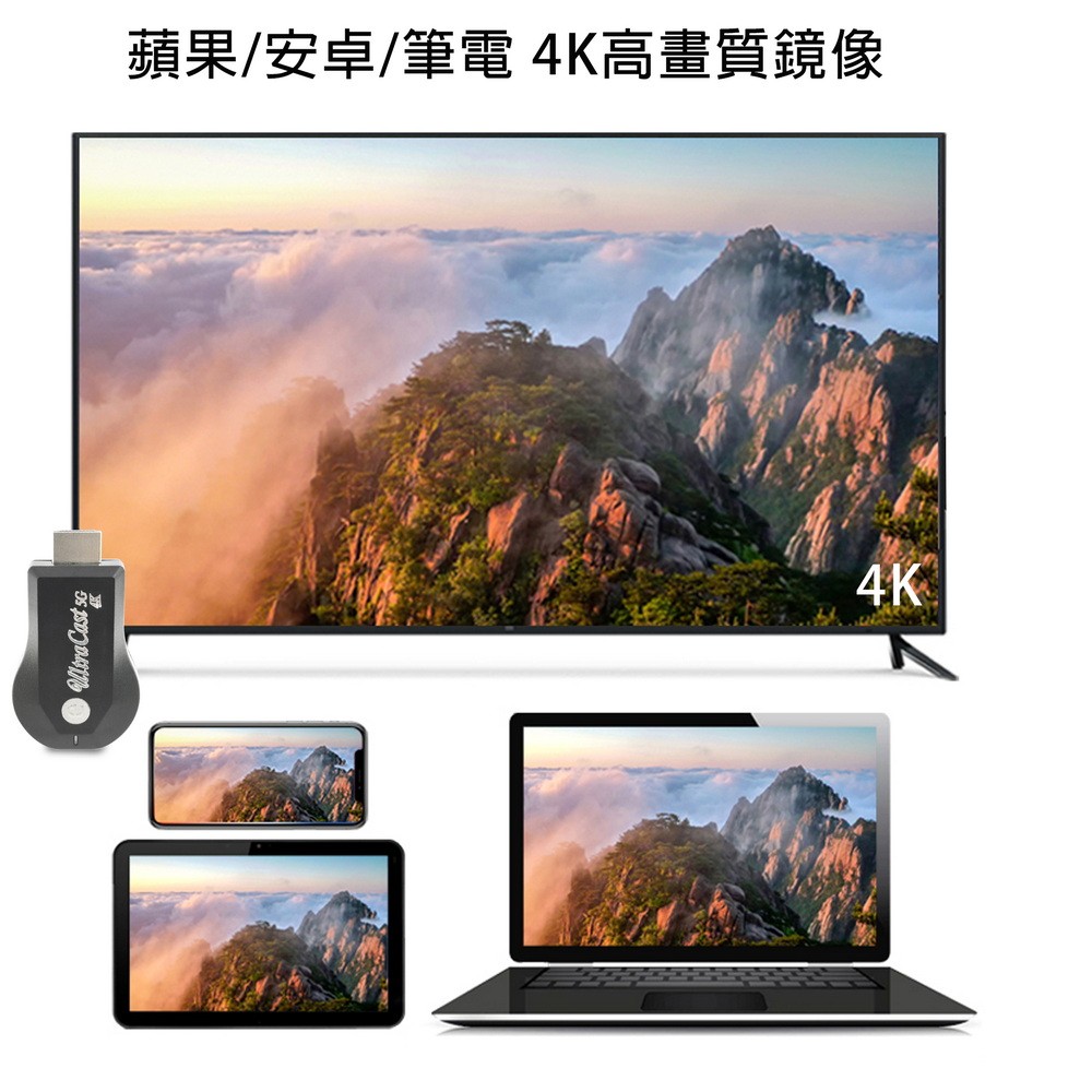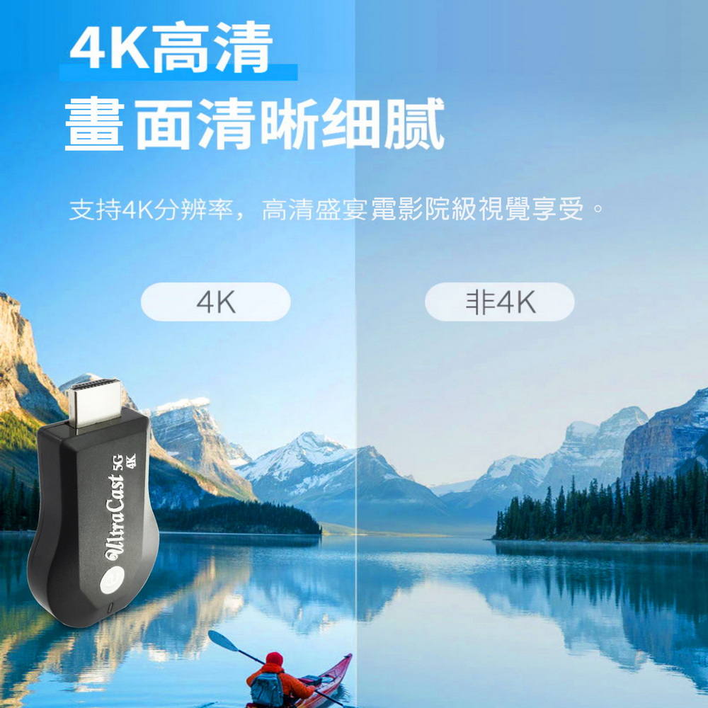 【4K影音真享樂】四核心UltraCast雙頻5G全自動無線HDMI影音鏡像器(送4大好禮)
