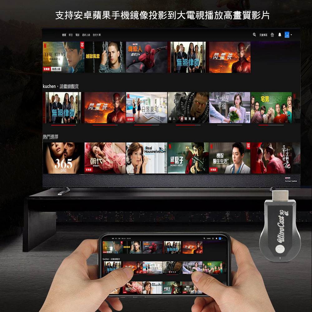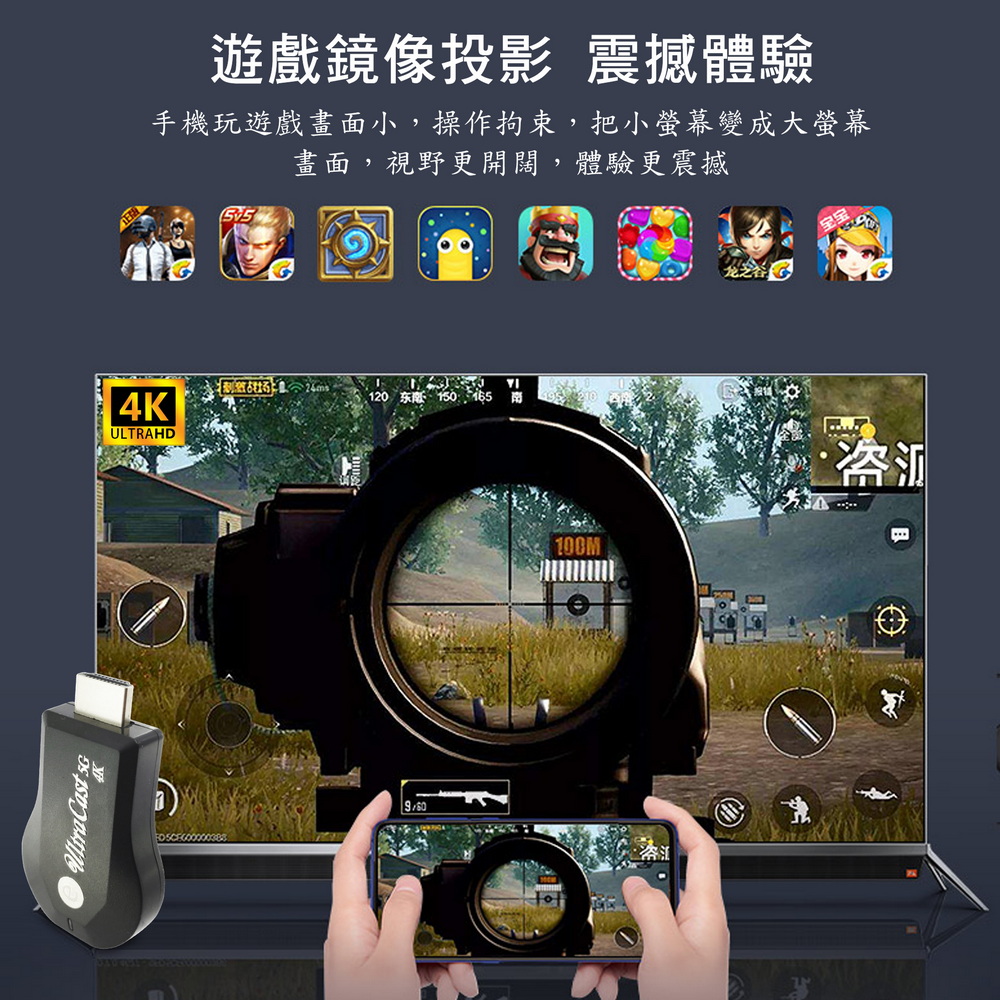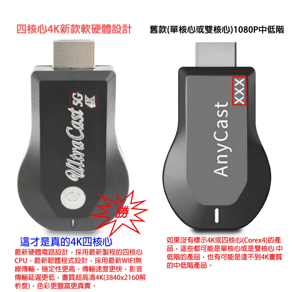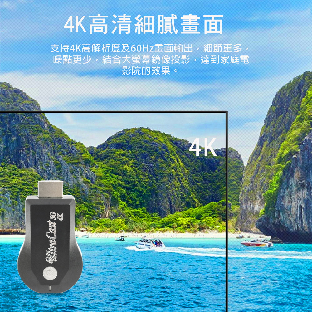 【4K影音真享樂】四核心UltraCast雙頻5G全自動無線HDMI影音鏡像器(送4大好禮)
