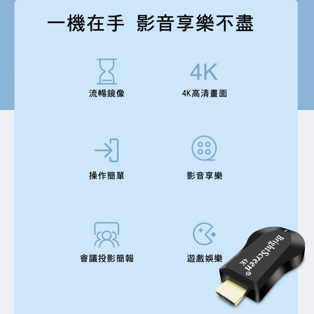 【4K影音真棒】四核心BrightScreen雙頻5G全自動無線HDMI影音鏡像器(附4大好禮)