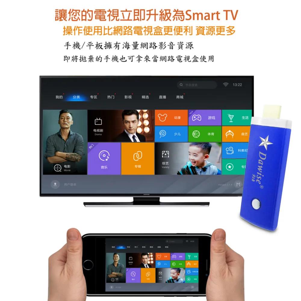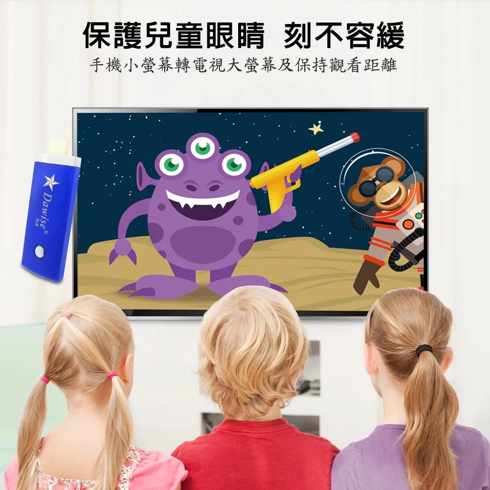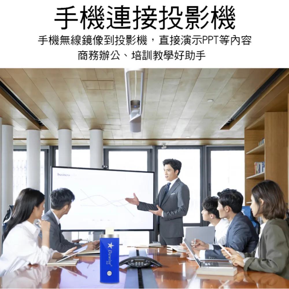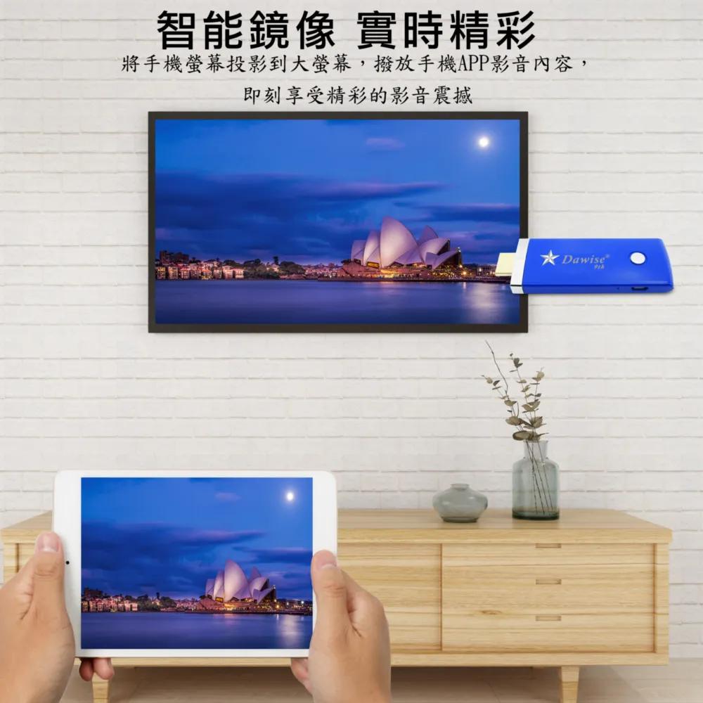 隨時隨地大螢幕娛樂操作簡單影音投影一機多用,教學娛樂導航全搞定免安裝任何軟體無線連結,影音同步分享支援蘋果/安卓/電腦無線投影可電腦直接電視同步顯示高畫質輸出,高速穩定傳輸《商品介紹》隨著智慧型裝置普及,手機、平板、電腦已成為日常不可或缺的工具。但螢幕太小往往影響學習與娛樂體驗。現在,只要一個 無線投影器,就能輕鬆將螢幕畫面同步到電視或投影機,大螢幕享受更清晰、更震撼!隨插即投:操作簡單,免驅動免APP。跨平台支援:支援 iOS / Android / Windows / Mac OS。高畫質輸出:支援 Full HD ,清晰不卡頓。穩定傳輸:低延遲設計,影音同步。輕巧便攜:出差、上課、居家,一機搞定。【應用場景】居家娛樂:追劇、看電影,大螢幕更沉浸。遊戲對戰:手機秒變遊戲主機,刺激加倍。教育教學:課堂同步投影,互動更生動。會議簡報:商務展示更專業,告別繁瑣連線。汽車導航:手機地圖投影到大螢幕,安全又直觀。《注意事項》1.如果要使用在汽車的螢幕投影,請先確認汽車是否有HDMI或AV影音輸入,請確認後再進行購買。2. 本商品是HDMI影音傳輸介面,如果是汽車是AV(黃白紅三色插孔)則需要另外自行準備HDMI轉AV的轉換器才可以使用。《商品配備》無線影音鏡像傳輸器 x1說明書 x14大好禮: USB充電器x1 + USB供電線x1 + HDMI延長線x1 + 手機支架或指環扣(二選一)《商品規格》廠牌: Dawise型號: 九代WD39顏色: 藍支援的設備: 蘋果,安卓,微軟裝置支援影音同步傳輸模式: AirPlay/Miracast/DLNA/WIDIUSB供電(DC+5V)HDMI連接電視產地: 中國大陸產品保固: 主機保固3個月,配件/贈品保固1個月,保固範圍不包含人為損壞。《NCC認證字號》CCAJ15LP0827T6