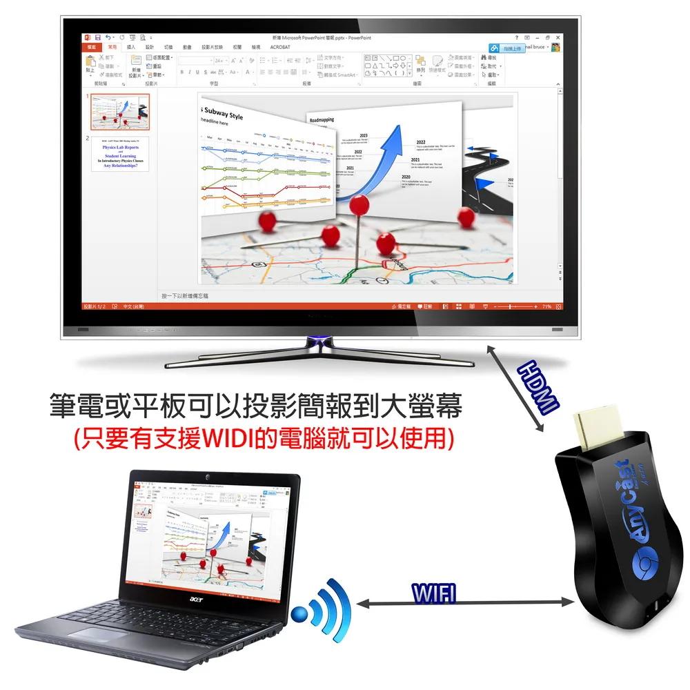 隨時隨地大螢幕娛樂操作簡單影音投影一機多用,教學娛樂導航全搞定免安裝任何軟體無線連結,影音同步分享支援蘋果/安卓/電腦無線投影可電腦直接電視同步顯示高畫質輸出,高速穩定傳輸《商品介紹》隨著智慧型裝置普及,手機、平板、電腦已成為日常不可或缺的工具。但螢幕太小往往影響學習與娛樂體驗。現在,只要一個 無線投影器,就能輕鬆將螢幕畫面同步到電視或投影機,大螢幕享受更清晰、更震撼!隨插即投:操作簡單,免驅動免APP。跨平台支援:支援 iOS / Android / Windows / Mac OS。高畫質輸出:支援 Full HD ,清晰不卡頓。穩定傳輸:低延遲設計,影音同步。輕巧便攜:出差、上課、居家,一機搞定。【應用場景】居家娛樂:追劇、看電影,大螢幕更沉浸。遊戲對戰:手機秒變遊戲主機,刺激加倍。教育教學:課堂同步投影,互動更生動。會議簡報:商務展示更專業,告別繁瑣連線。汽車導航:手機地圖投影到大螢幕,安全又直觀。《注意事項》1.如果要使用在汽車的螢幕投影,請先確認汽車是否有HDMI或AV影音輸入,請確認後再進行購買。2. 本商品是HDMI影音傳輸介面,如果是汽車是AV(黃白紅三色插孔)則需要另外自行準備HDMI轉AV的轉換器才可以使用。《商品配備》無線影音鏡像傳輸器 x1WiFi模組線x1說明書 x14大好禮: USB充電器x1 + HDMI傳輸線x1 + HDMI母對母轉接頭x1 + 手機支架x1《商品規格》廠牌: Dawise型號: 六代WD14顏色: 黑支援的設備: 蘋果,安卓,微軟裝置支援影音同步傳輸模式: AirPlay/Miracast/DLNA/WIDIUSB供電(DC+5V)HDMI連接電視產地: 中國大陸產品保固: 主機保固3個月,配件/贈品保固1個月,保固範圍不包含人為損壞。《NCC認證字號》 CCAJ14LP398BT2