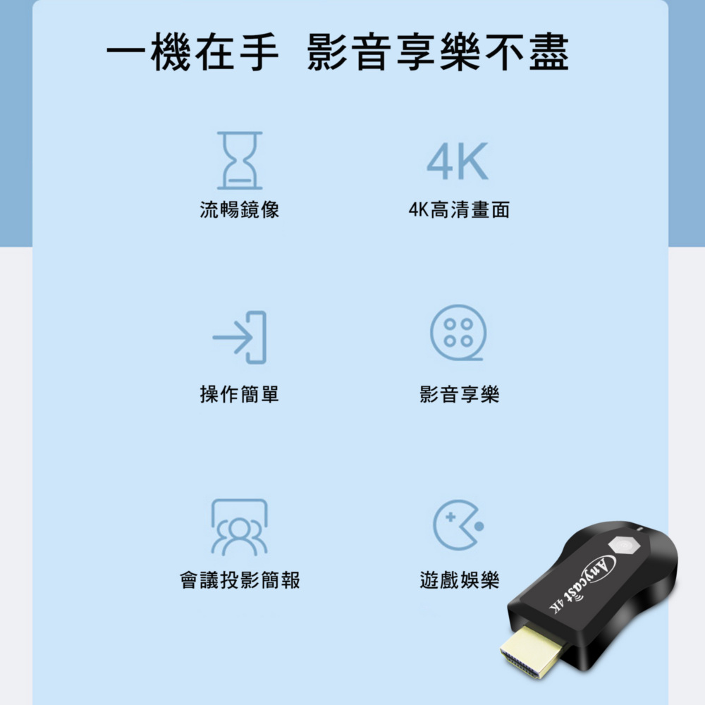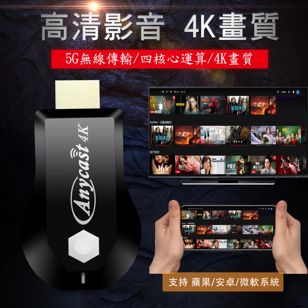 【4K影音真棒】e時代四核心AnyCast雙頻5G全自動無線HDMI影音電視棒(附4大好禮)