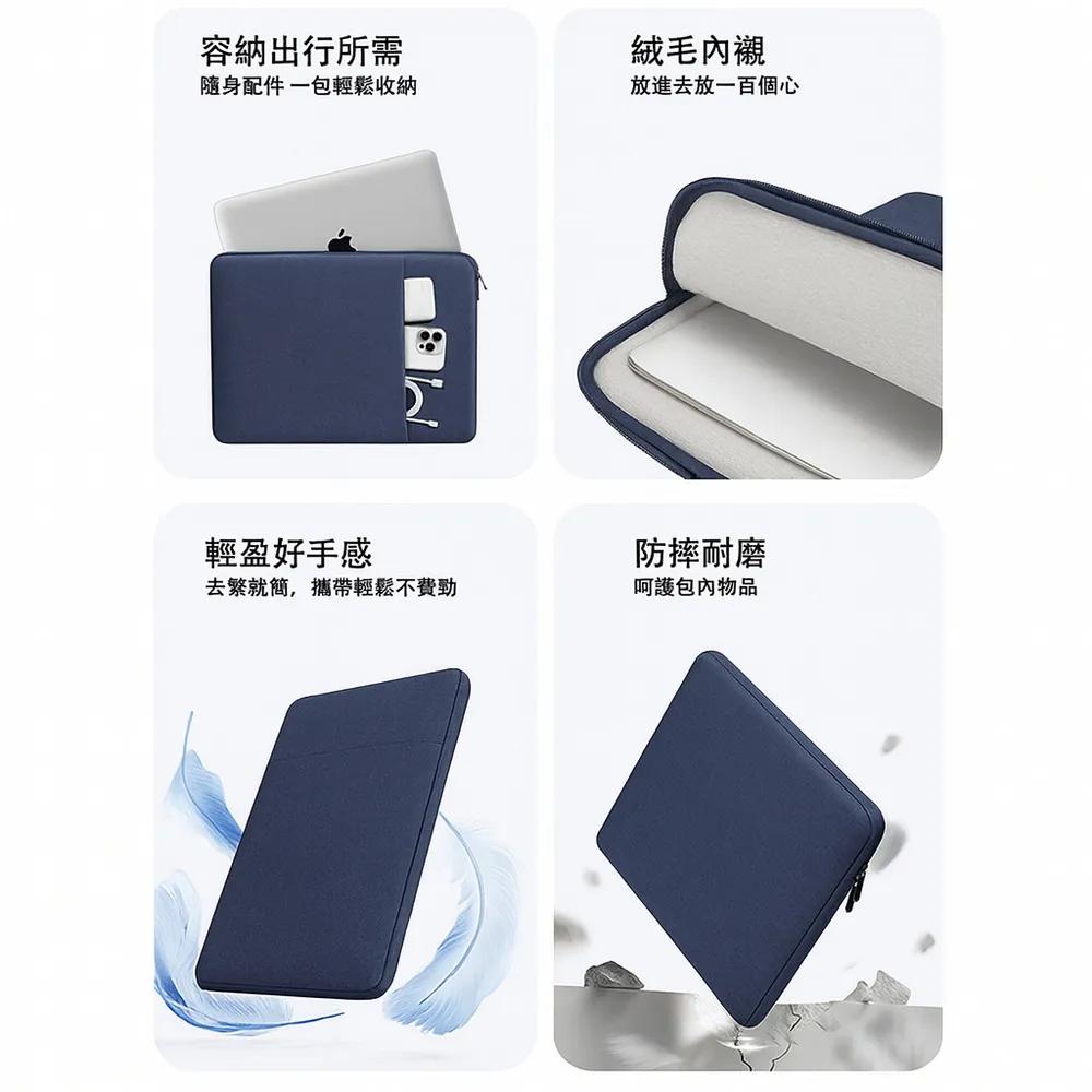 《商品介紹》輕輕呵護您的平板及筆電精緻輕薄,方便好攜帶■簡約精湛的設計■多重保護,防撞防污損■適用各種便攜式裝置設備■ 經久耐用,柔軟內襯,防震減壓1.可置放ipad/Mac/平板/筆電/手機,可當內襯包使用,加強保護。2.精緻美感,防護平板/筆電刮傷或碰撞。3.兼具防震緩衝、柔軟彈性等特點,手感細膩,舒軟,讓您的筆電/平板受到最好的保護。4.輕巧簡約便利攜帶5.防塵防撞,保護設備不受損《注意事項》請確認您的平板或筆電的長寬尺寸,再進行購買適當尺寸的保護包11吋 尺寸規格(長x寬): 31.5 x 22 (cm)13吋 尺寸規格(長x寬): 33 x 24 (cm)14吋 尺寸規格(長x寬): 35 x 26 (cm)15.6吋 尺寸規格(長x寬): 38 x 28 (cm)
