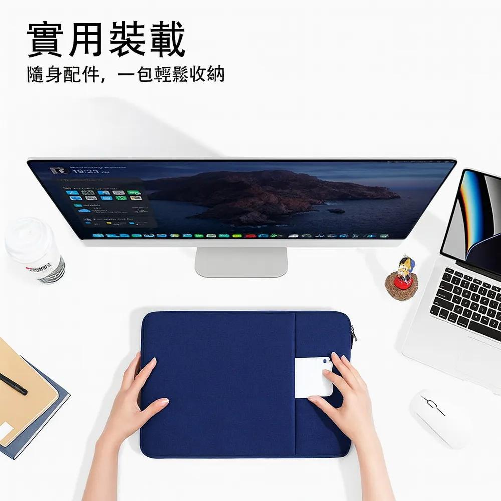 (14吋) LB13B都市簡約款iPad/Mac/平板/筆電 前置收納拉鍊袋 內膽保護包(沉穩藍)