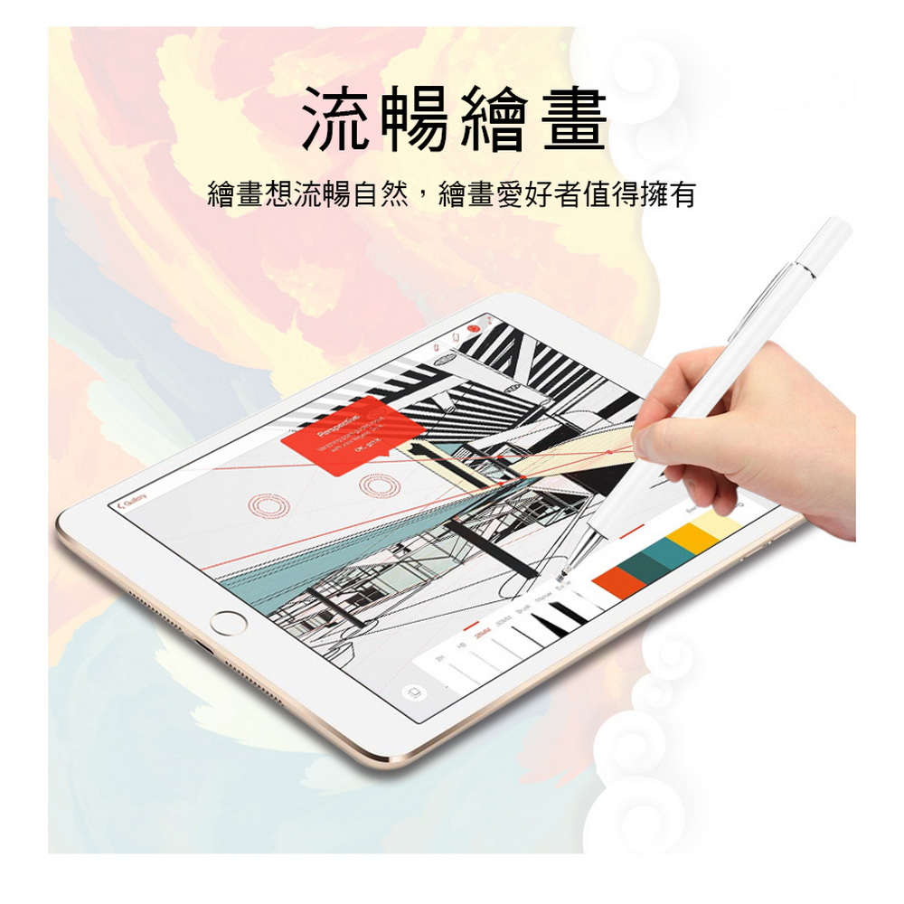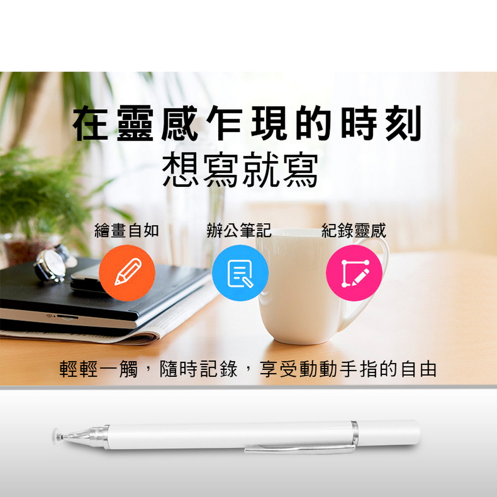 《商品介紹》攜帶方便,隨意書寫想畫就畫,想寫就寫免裝軟體,無需藍芽配對■書寫/塗鴉/繪圖最佳利器■適用所有電容式觸控螢幕■順滑好書寫■好握好寫,攜帶方便1. 本產品適用所有”蘋果/安卓/微軟”電容式觸控螢幕。2. 細字觸控筆,穩定/耐用/實用。3. 適用範圍更廣,可以使用在所有型號的iPad及iPhone, 更可以使用在電容式觸控螢幕的安卓平版及手機,微軟系統的電容式觸控螢幕也都適用。4. 書寫,精密圖稿設計,繪畫,塗抹都適合。