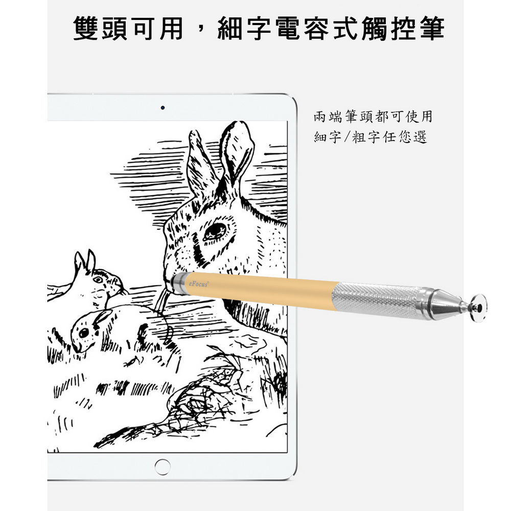 《商品介紹》攜帶方便,隨意書寫想畫就畫,想寫就寫免裝軟體,無需藍芽配對■書寫/塗鴉/繪圖最佳利器■適用所有電容式觸控螢幕■順滑好書寫■好握好寫,攜帶方便■雙頭觸控設計,粗細同時兼顧1. 本產品適用所有”蘋果/安卓/微軟”電容式觸控螢幕。2. 細字觸控筆,穩定/耐用/實用。3. 適用範圍更廣,可以使用在所有型號的iPad及iPhone, 更可以使用在電容式觸控螢幕的安卓平版及手機,微軟系統的電容式觸控螢幕也都適用。4. 書寫,精密圖稿設計,繪畫,塗抹都適合。