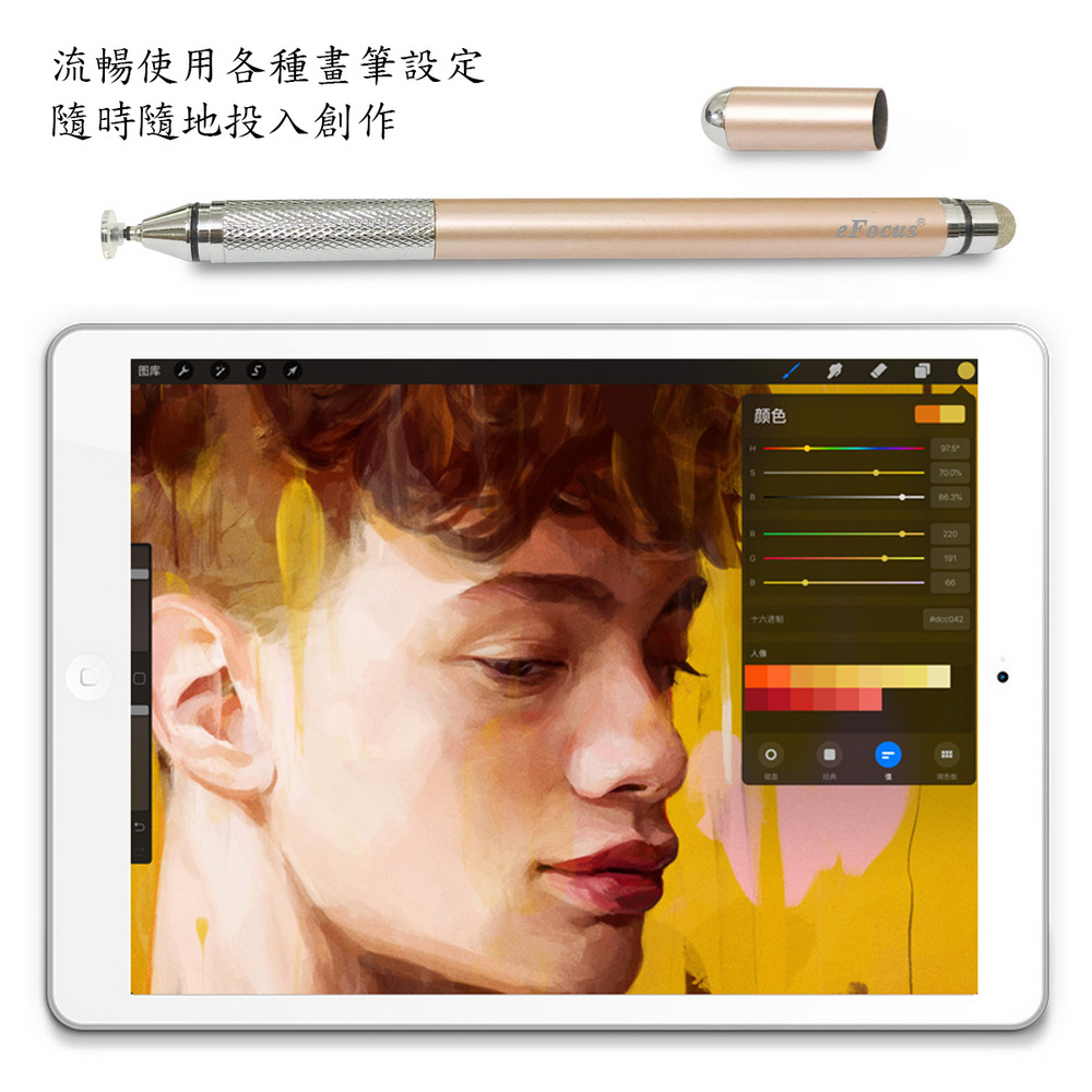 (一組4入)【eFocus土星金】DP22雙頭圓盤網狀細字觸控筆