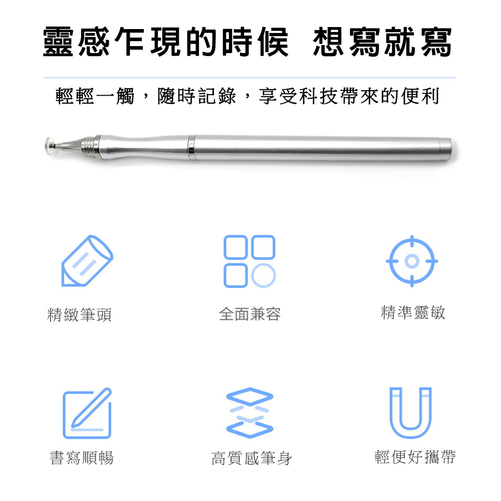 《商品介紹》攜帶方便,隨意書寫想畫就畫,想寫就寫免裝軟體,無需藍芽配對■書寫/塗鴉/繪圖最佳利器■適用所有電容式觸控螢幕■順滑好書寫■好握好寫,攜帶方便■雙頭觸控設計,粗細同時兼顧1. 本產品適用所有”蘋果/安卓/微軟”電容式觸控螢幕。2. 細字觸控筆,穩定/耐用/實用。3. 適用範圍更廣,可以使用在所有型號的iPad及iPhone, 更可以使用在電容式觸控螢幕的安卓平版及手機,微軟系統的電容式觸控螢幕也都適用。4. 書寫,精密圖稿設計,繪畫,塗抹都適合。