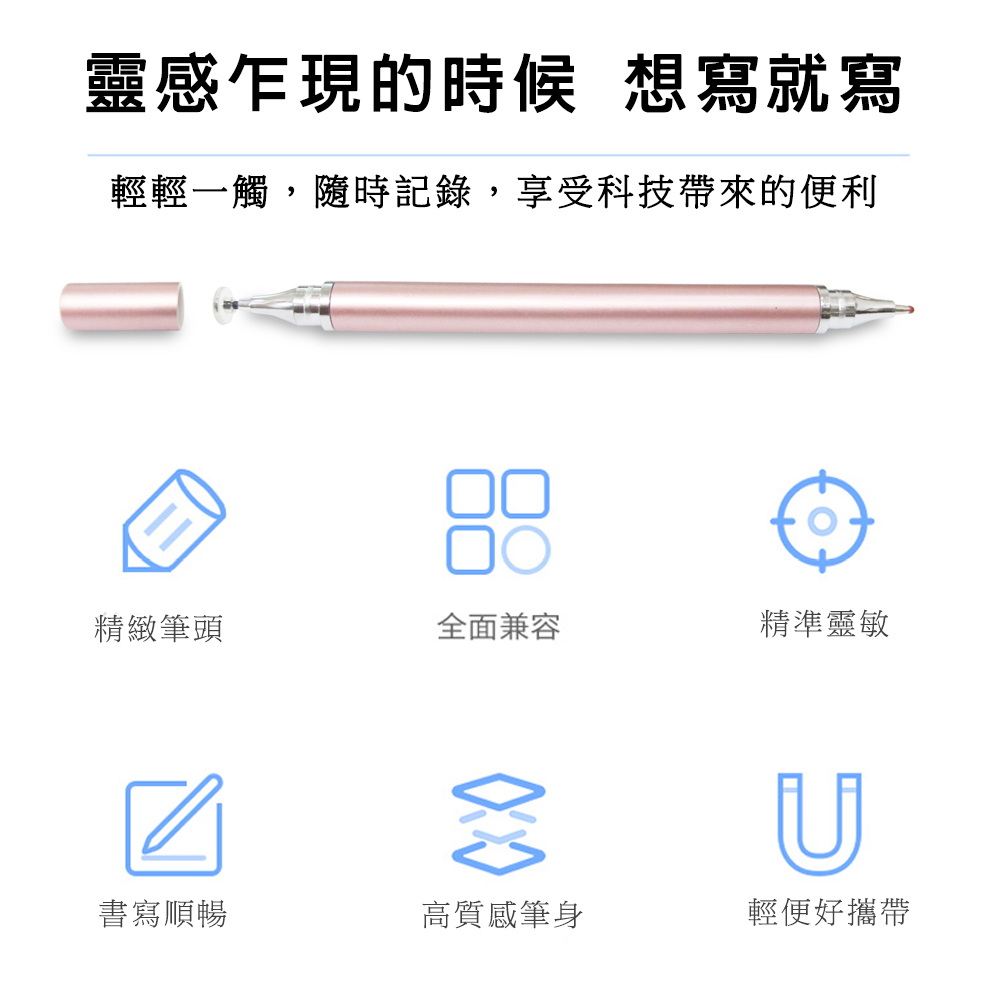 《商品介紹》攜帶方便,隨意書寫想畫就畫,想寫就寫免裝軟體,無需藍芽配對■書寫/塗鴉/繪圖最佳利器■適用所有電容式觸控螢幕■順滑好書寫■好握好寫,攜帶方便■雙頭觸控設計,觸控及書寫同時兼顧1. 本產品適用所有”蘋果/安卓/微軟”電容式觸控螢幕。2. 細字觸控筆,穩定/耐用/實用。3. 適用範圍更廣,可以使用在所有型號的iPad及iPhone, 更可以使用在電容式觸控螢幕的安卓平版及手機,微軟系統的電容式觸控螢幕也都適用。4. 書寫,精密圖稿設計,繪畫,塗抹都適合。