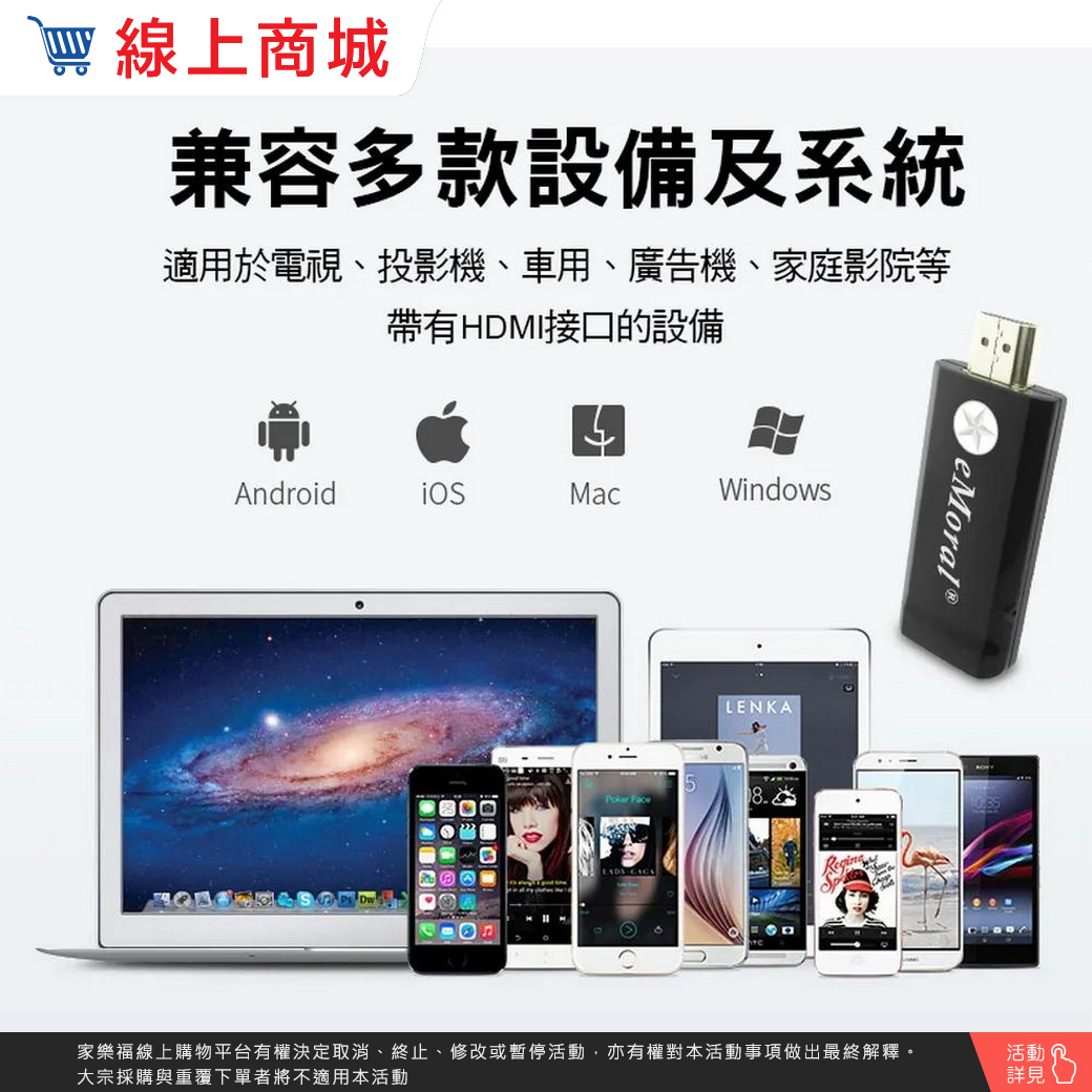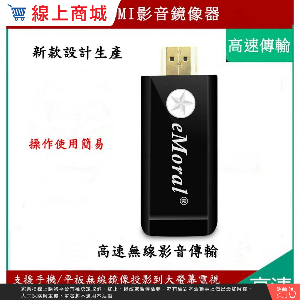 【清倉特價】【第七代黑武士】eMoral自動免切換無線影音鏡像器(附4大好禮)
