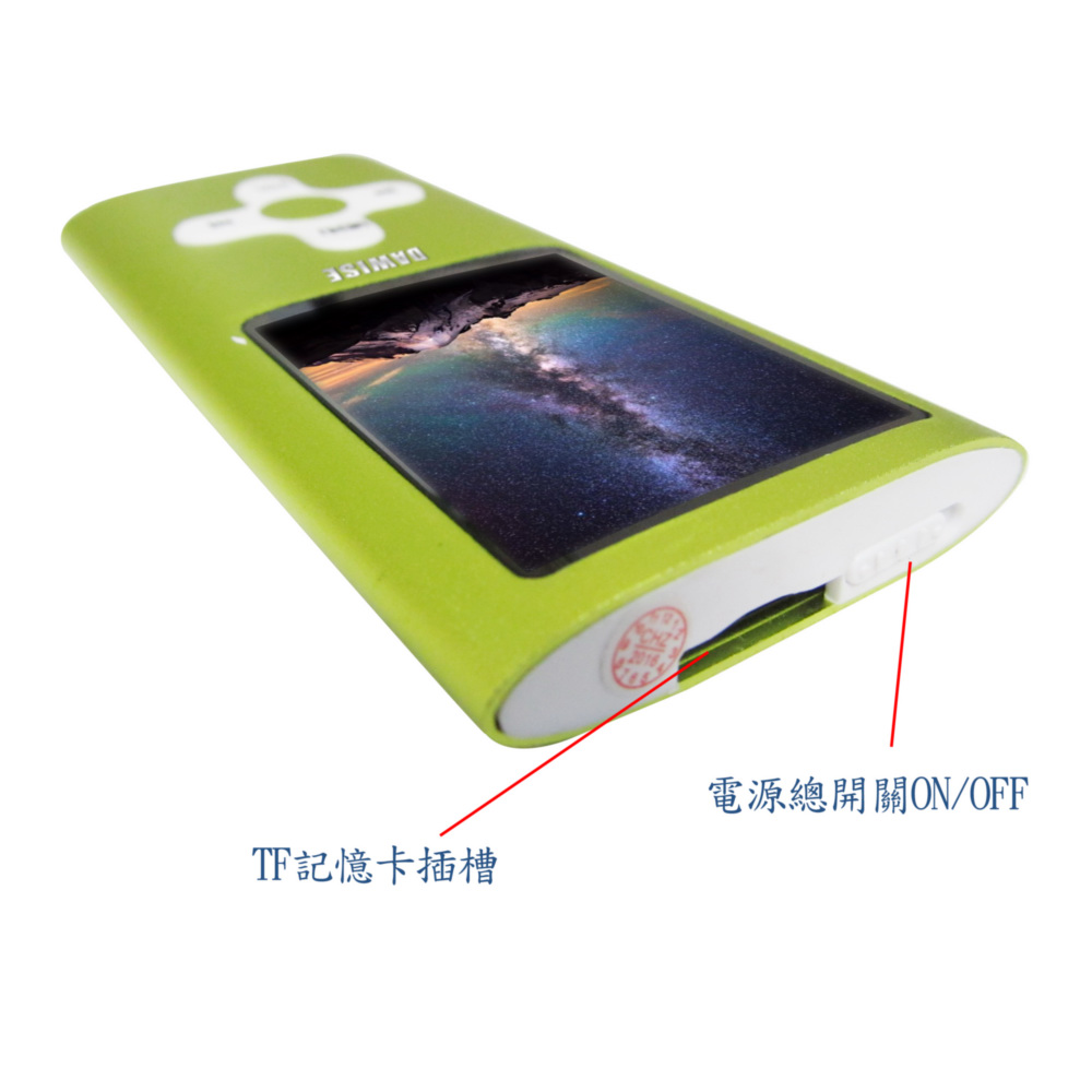 《商品介紹》音樂聽不累可看影片及照片1.8吋26萬色TFT螢幕支援TF插卡功能高音質MP3音樂播放彩色照片及影片播放金屬外殼,輕薄好攜帶支援TF卡插卡功能支援多種音樂格式真正支援電影播放最高等級真正1.8吋大螢幕TFT屏26萬5000色彩色螢幕多種音效模式,讓您愛怎麼聽就怎麼聽可選擇資料夾播放設定電子相簿JPEG圖片瀏覽功能電子書TXT文字閱讀功能睡眠定時關機設置背光時間設置、省電模式設置、螢幕亮度設置最新全彩圖形化界面操作,方便易懂透過目錄瀏覽可快速選到要聽的歌曲可設置在多長時間內無按鍵操作屏幕變黑(0~30秒)睡眠模式讓你可設定0~120分鐘省電功能讓你可設定 0~60 秒螢幕保護省電使用電源是內置高效能鋰電池《注意事項》本商品無內建記憶體,需外接插卡才可以使用