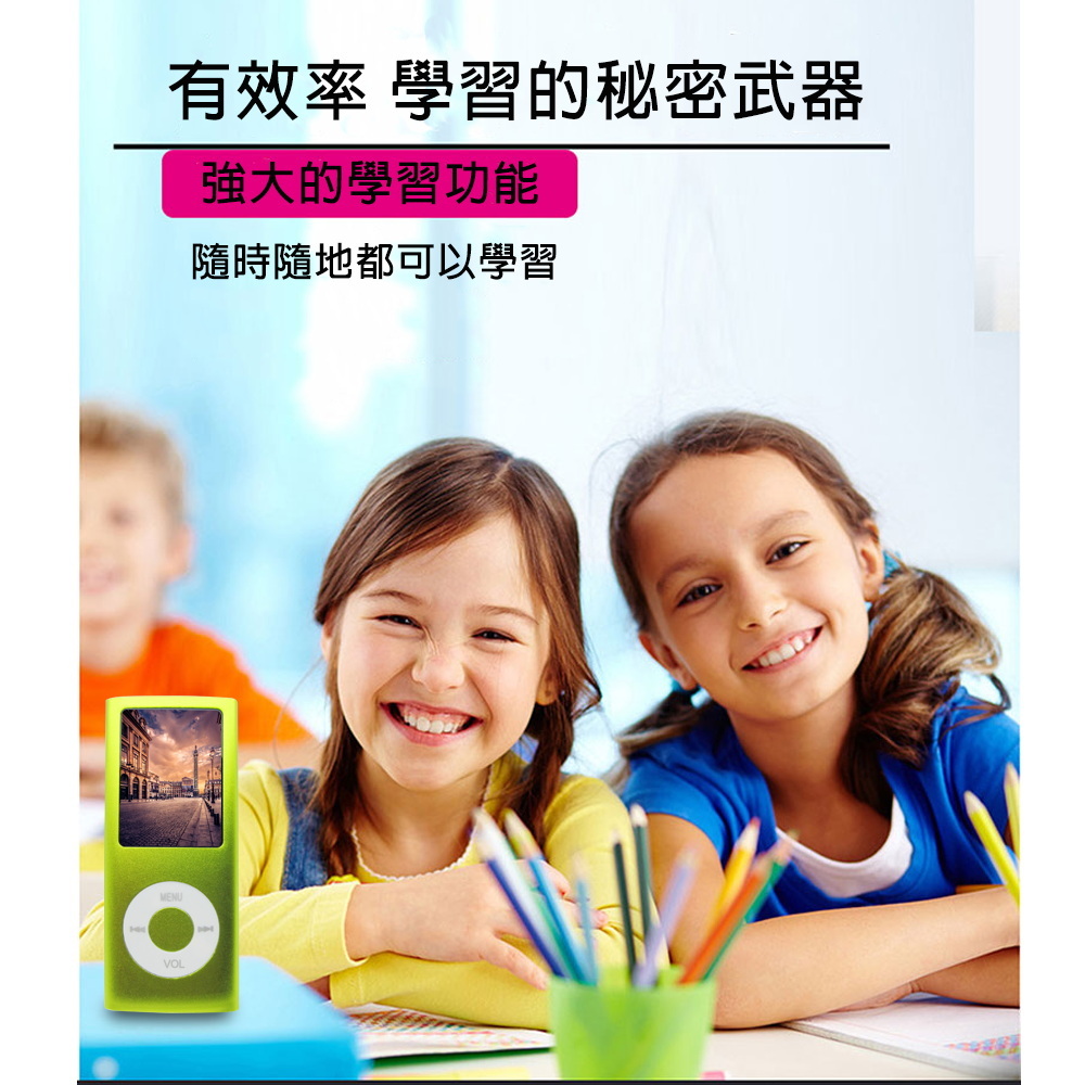 《商品介紹》音樂聽不累可看影片及照片1.8吋26萬色TFT螢幕高音質MP3音樂播放彩色照片及影片播放金屬外殼,輕薄好攜帶支援TF卡插卡功能支援多種音樂格式真正支援電影播放最高等級真正1.8吋大螢幕TFT屏26萬5000色彩色螢幕多種音效模式,讓您愛怎麼聽就怎麼聽電子相簿JPEG圖片瀏覽功能電子書TXT文字閱讀功能睡眠定時關機設置背光時間設置、省電模式設置、螢幕亮度設置最新全彩圖形化界面操作,方便易懂可設置在多長時間內無按鍵操作屏幕變黑(0~30秒)睡眠模式讓你可設定0~120分鐘省電功能讓你可設定 0~60 秒螢幕保護省電使用電源是內置高效能鋰電池《注意事項》本商品無內建記憶體,需外接插卡才可以使用