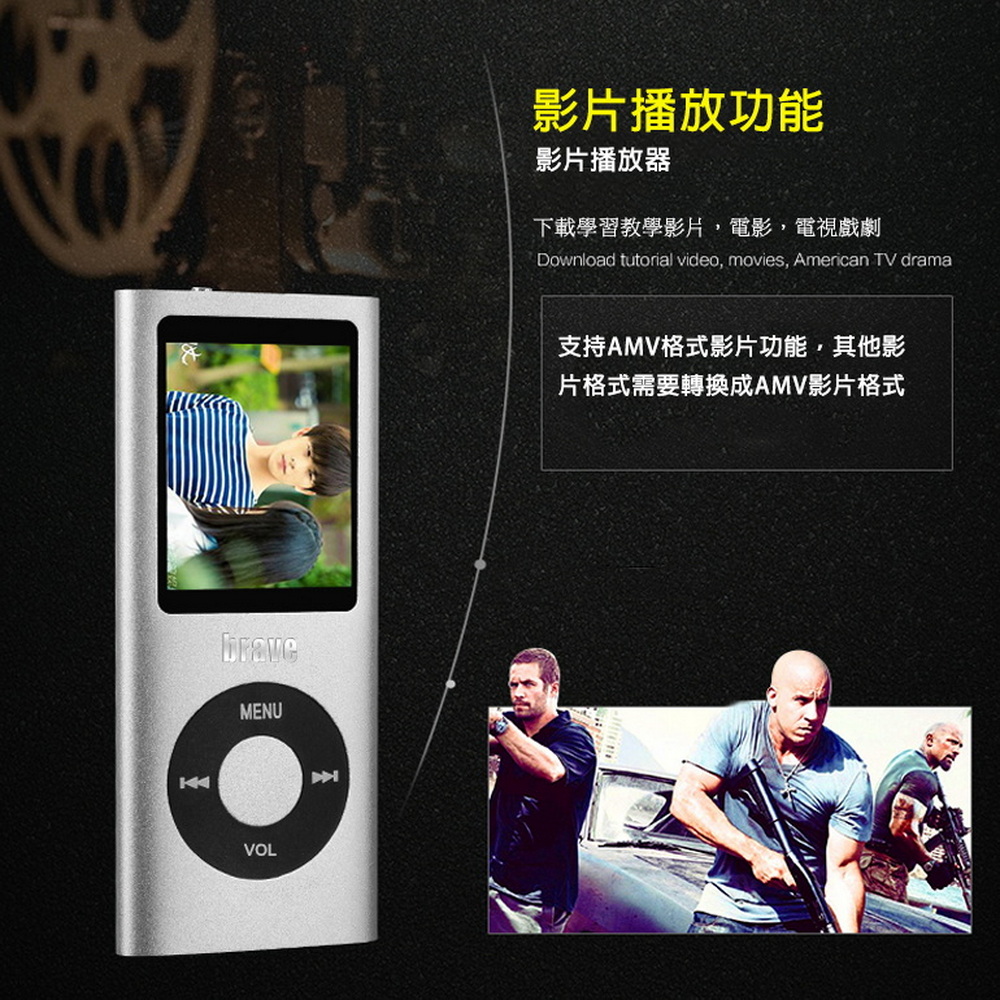 【B1848C】brave新蘋果四代1.8吋彩色螢幕 MP4插卡式隨身聽(加64G記憶卡)(附6大好禮)