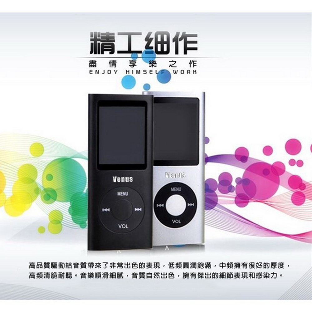 【B1832C】Venus輕薄四代插卡1.8吋彩色螢幕 MP4隨身聽(加64G記憶卡)(附6大好禮)