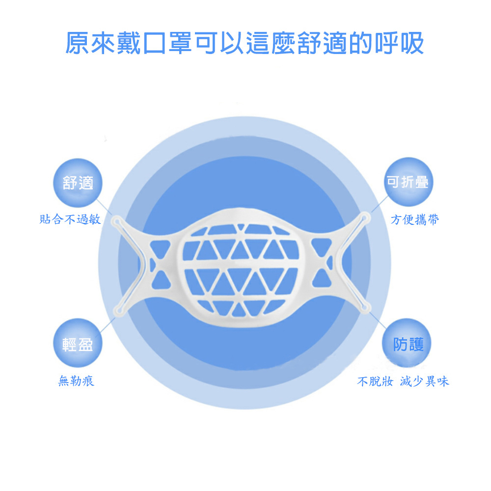 《商品介紹》搭配口罩的最佳神器解決長時間配戴口罩的困擾立體支撐 空氣流通更舒適人體工學設計 3D立體支撐適合不同臉型使用減少直接接觸口罩 增加安全使用便利 簡易扣掛舒適 透氣 清爽可水洗重複使用《注意事項》1. 本商品不含口罩,商品主體是口罩支架2. 本商品是屬於衛生用品類,商品拆封後,不再享有退貨服務。