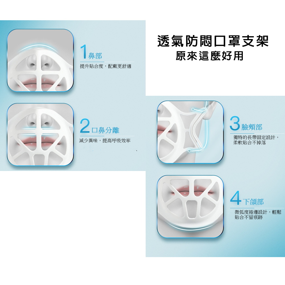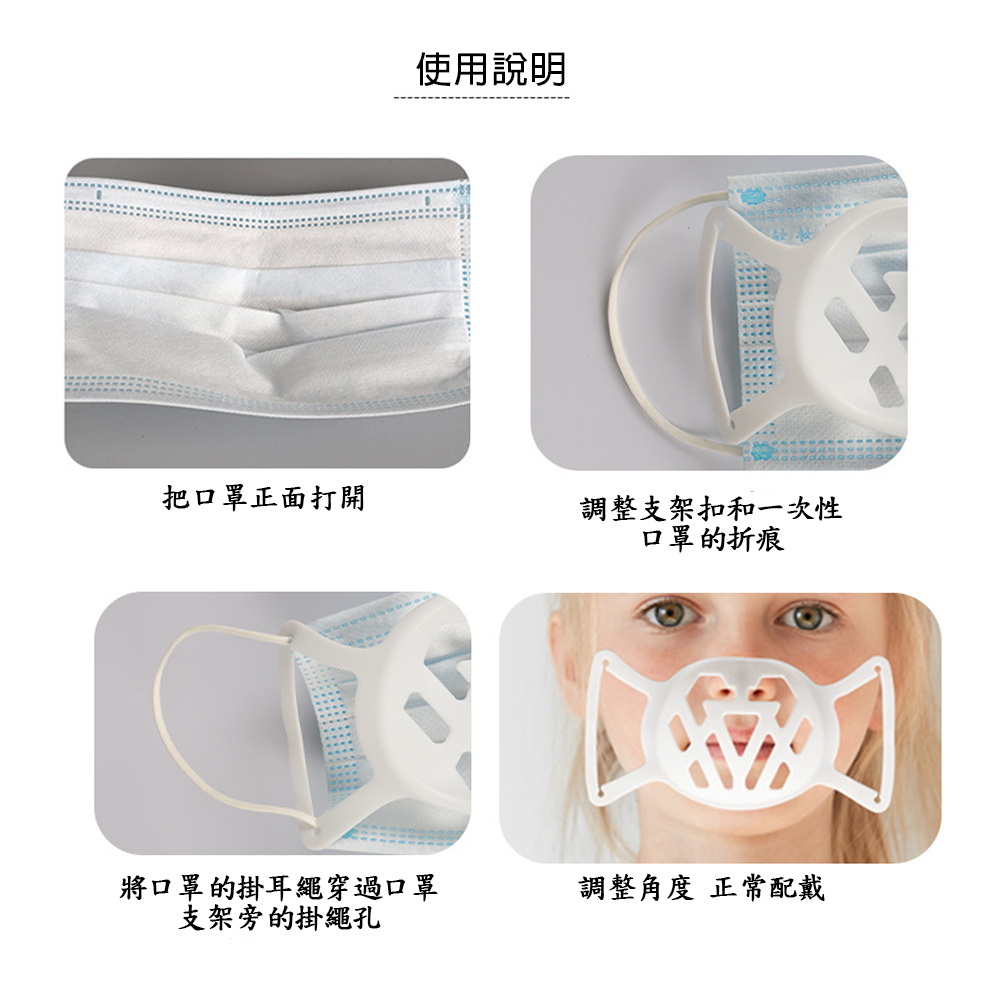 【10入】SC06三代兒童舒適款全罩透氣立體矽膠口罩支架