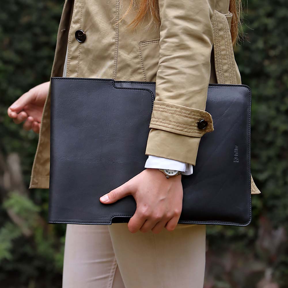 【Del Sur】阿根廷頭層牛皮純手工植鞣天然皮革電腦包-13.3直式-經典黑