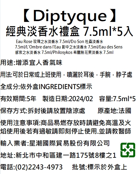◎品牌:Diptyque ◎規格: 1Set組 x 1 x 1SET組