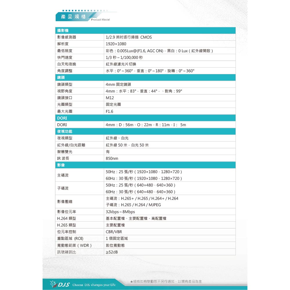 昌運監視器 DJS-2N1T3LS 200萬智慧雙光槍型網路攝影機 智慧雙光功能 內建麥克風