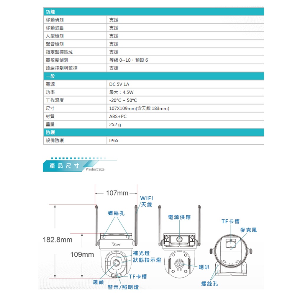 移動偵測、影像追蹤功能、上下左右轉動