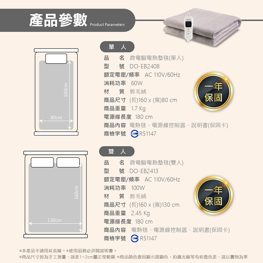 📌型號:單人DO-EB2408 /雙人 DO-EB2413