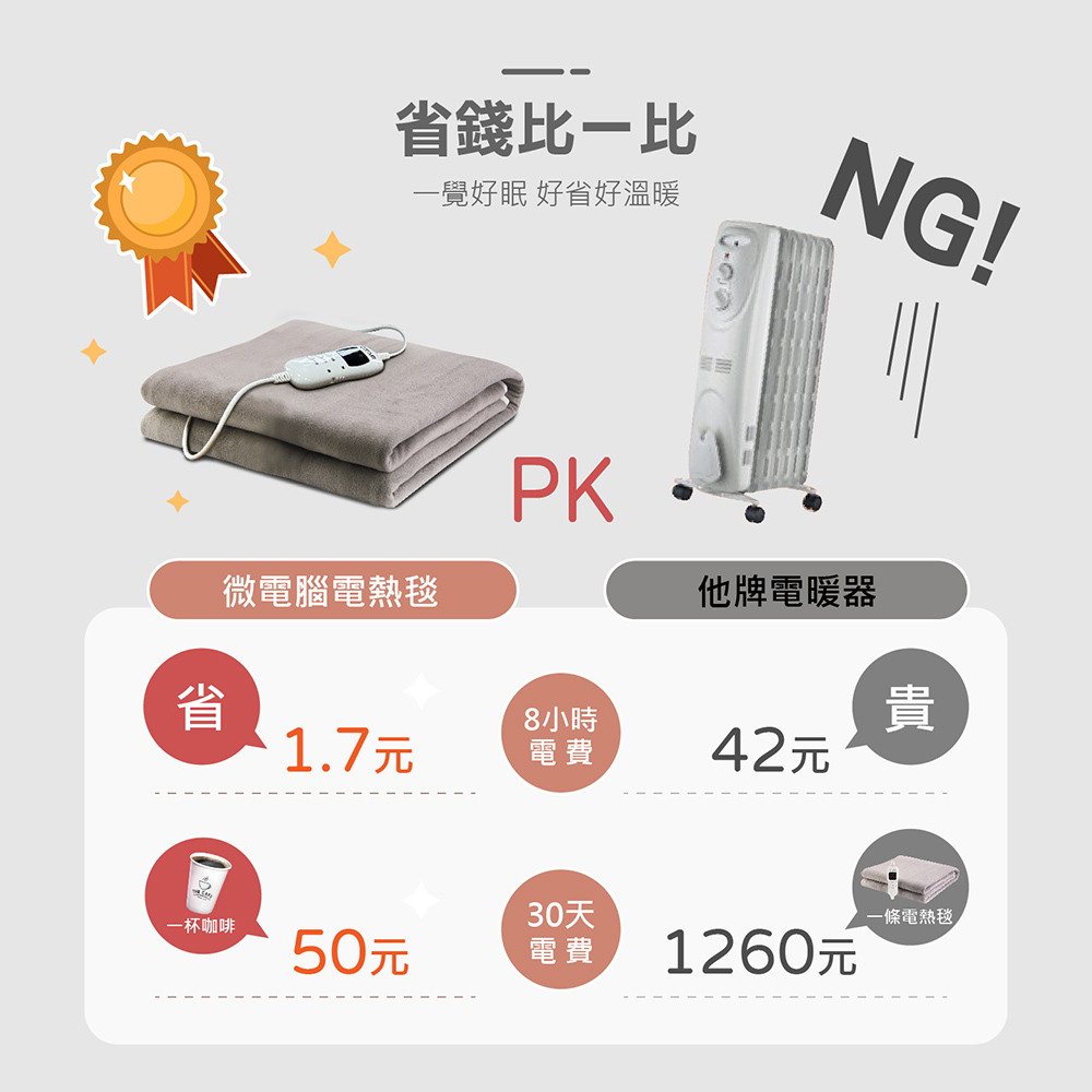 ⚠電熱毯請勿直接接觸皮膚,必須鋪於床單與床墊中間