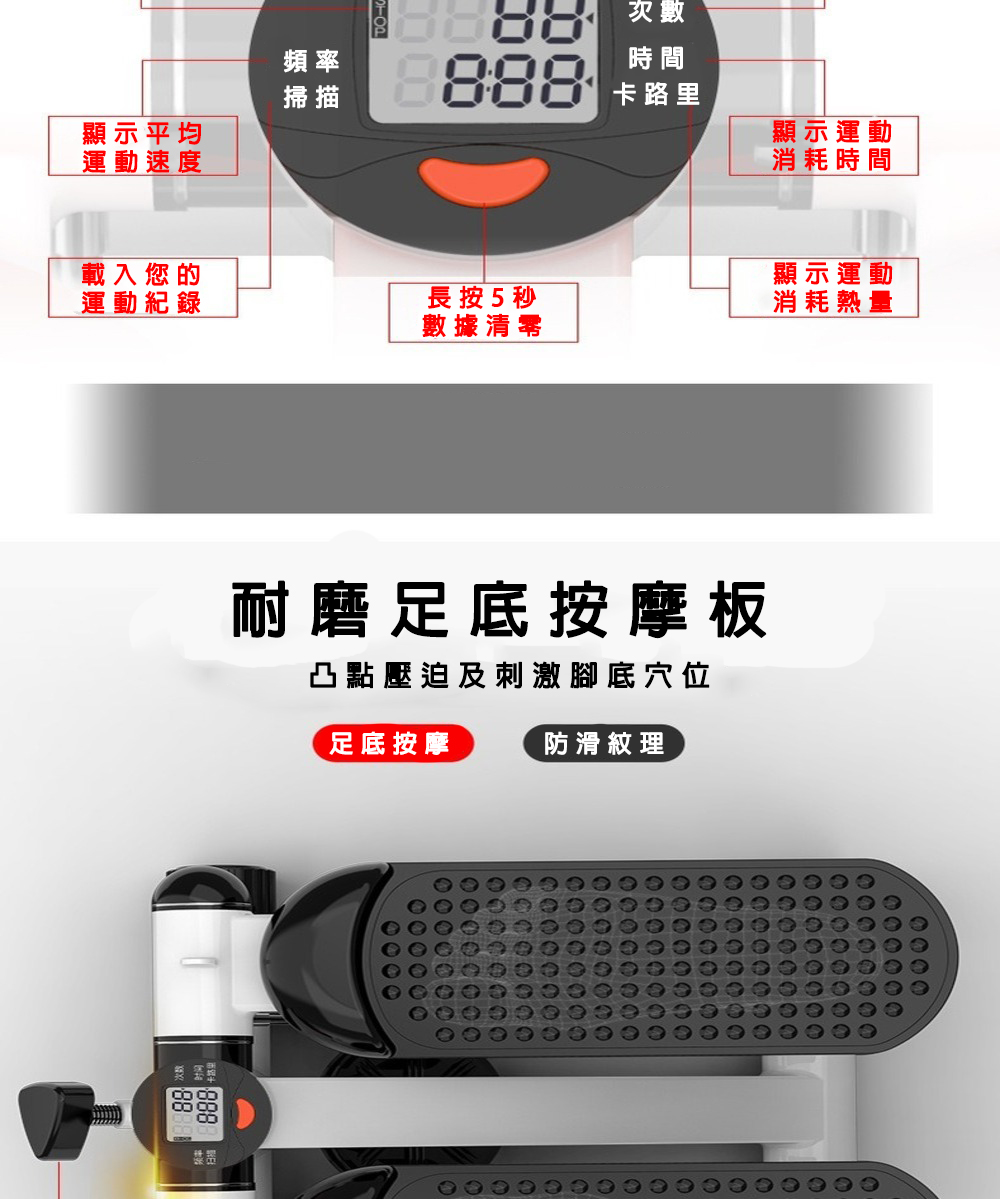 .電子螢幕計數: 具備電子螢幕,可清晰顯示計數、時間等運動數據。