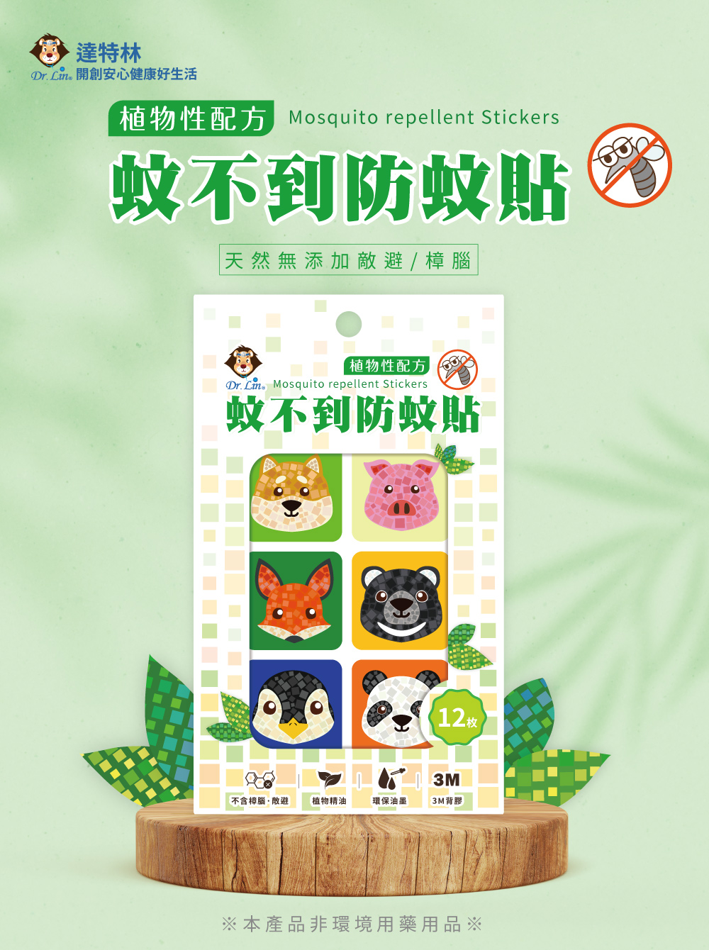 [佑全保健藥妝]Dr.Lin蚊不到防蚊貼(可愛動物)12枚/盒