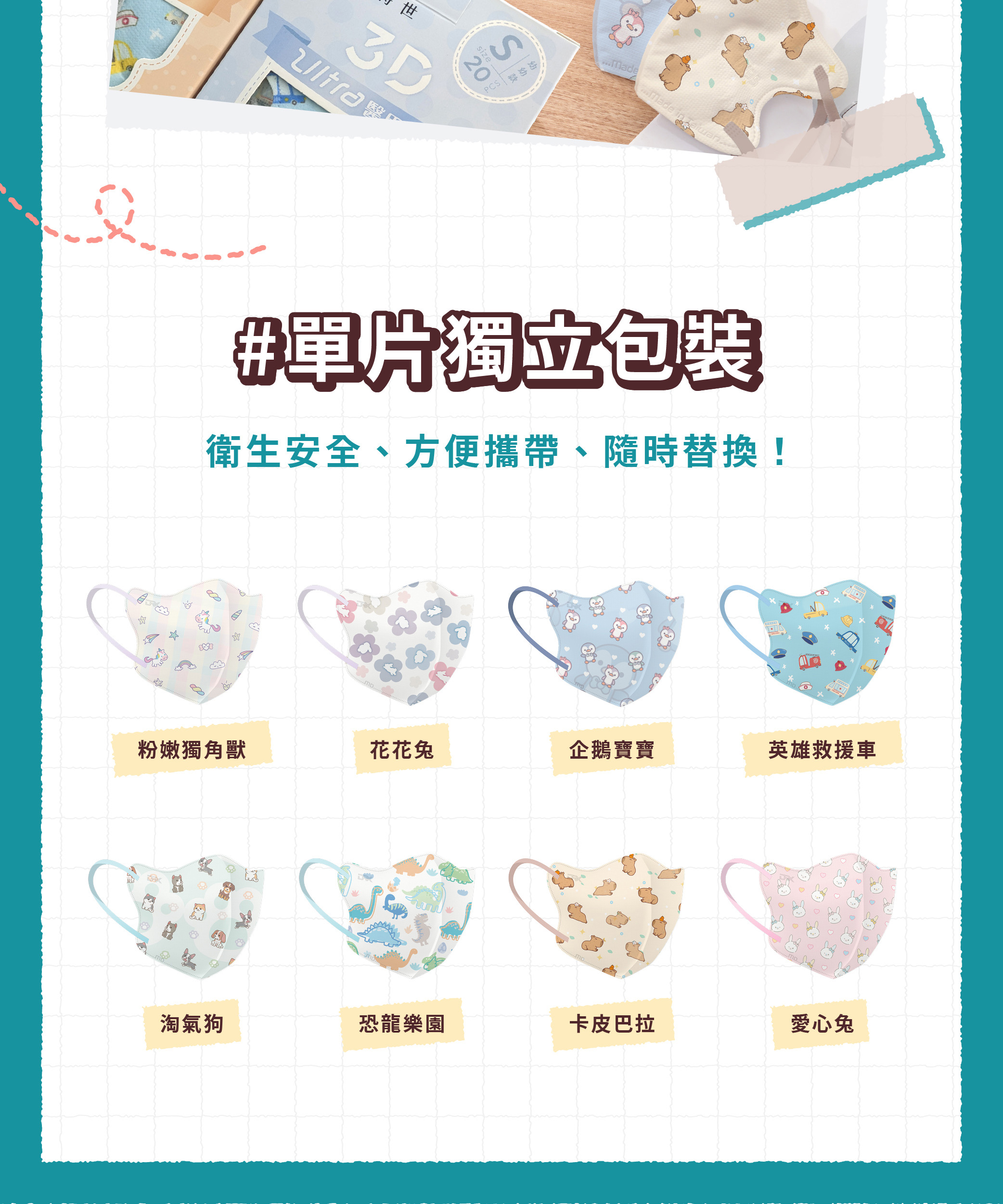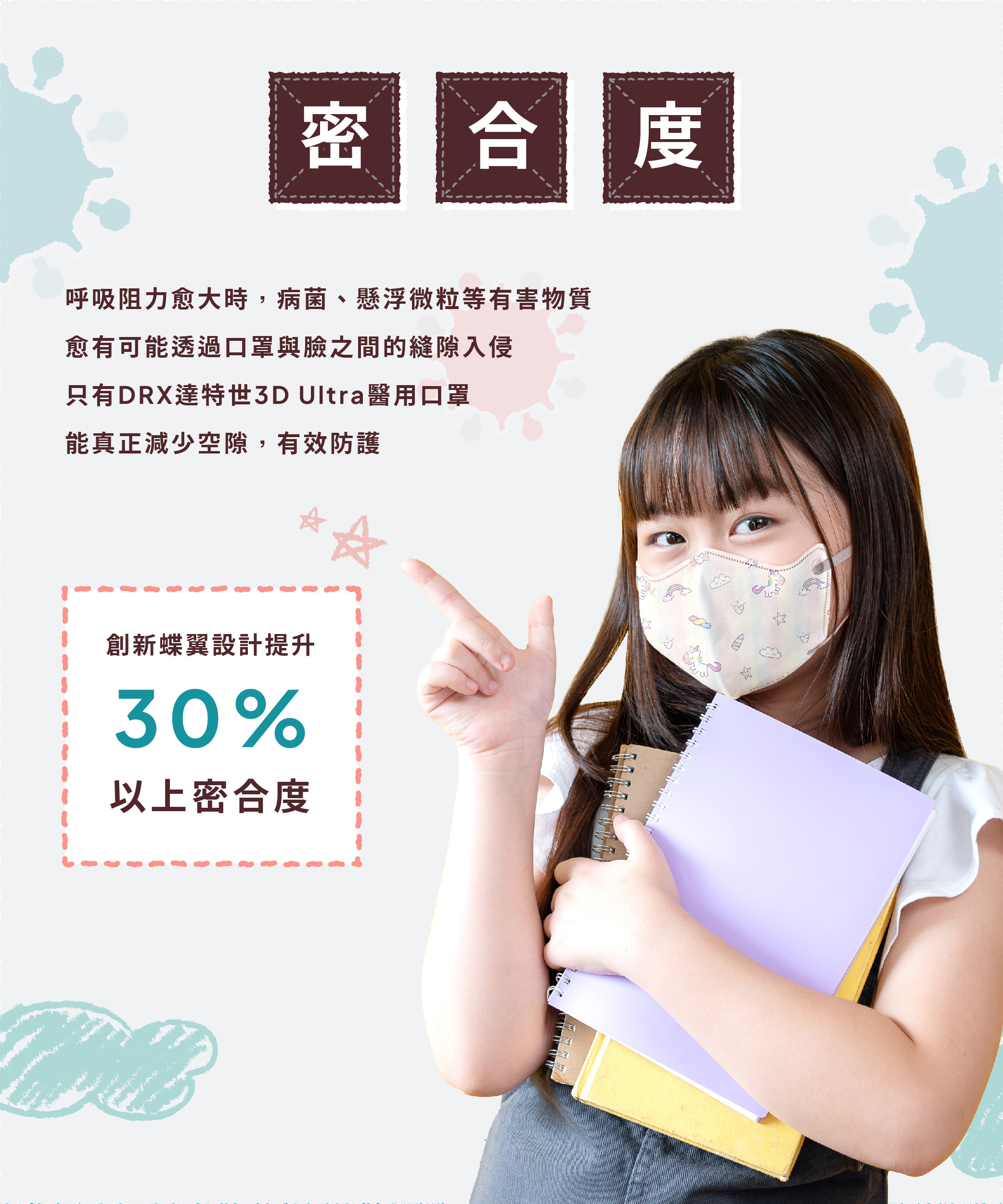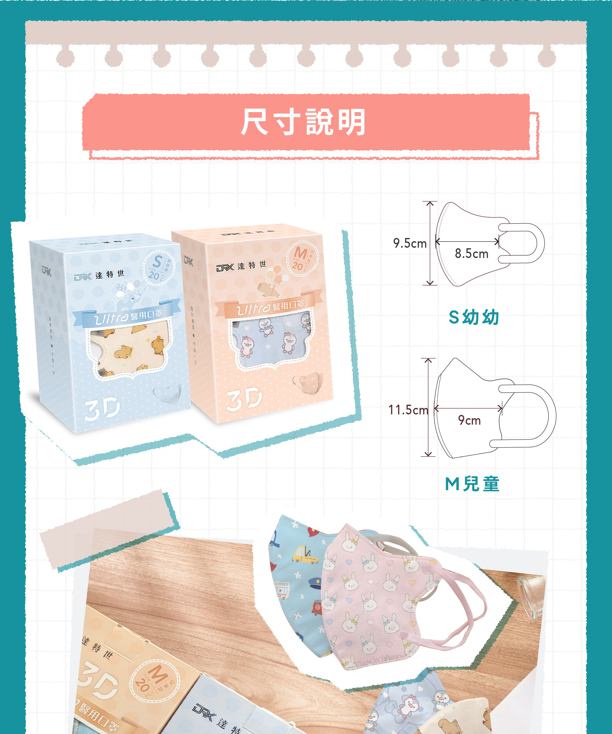 【DRX達特世】醫用3D Ultra口罩-花花兔 (20片),S (2-4歲)