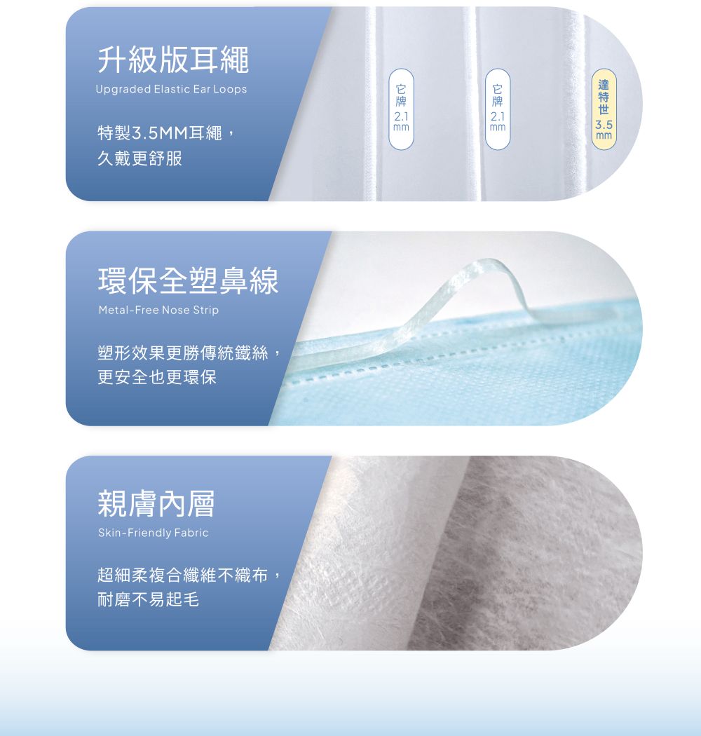 「消費者使用前應詳閱醫療器材說明書」●醫療器材品名: "達特世" 醫用口罩 (未滅菌)●醫療器材許可證字號:衛部醫器製壹字第008685號●許可證所有人:達特世生技有限公司●許可證所有人地址:新北市三重區溪尾街14號5樓●製造業者名稱:達特世生技有限公司●製造業者地址:新北市三重區溪尾街14號5樓之1及5樓之2●醫療器材商名稱:達特世生技有限公司●醫療器材商地址:新北市三重區溪尾街14號5樓●醫療器材商許可證字號:新北府重衛醫器販字第 MD6231017084 號●醫療器材商諮詢專線:02-22868689品牌:DRX 達特世規格:50入/1組貨源:自產自銷產地:台灣材質:不織布保存期限:5年「此商品屬個人衛生用品,不適用七天鑑賞期法規,拆封無猶豫期,如欲退貨請勿拆封。」【小提醒】服務時間:周一至週五 09:00 ~ 18:00 (例假日、國定假日除外)假日不出貨,顏色及數量已當下實際庫存量為主,庫存量不足將另行通知!※新舊包裝隨機出貨※※口罩屬個人衛生用品故經拆封後符合消保法第十九條所訂定之合理例外情事,無七日猶豫期,如欲退貨請勿拆封※※每批布的顏色,略有色差,依實際出貨商品為主※注意: 由於超商有寄貨限制,一筆訂單最多18盒 (如果超過18盒, 請分兩筆訂單下單)注意: 由於超商有寄貨限制,一筆訂單最多18盒 (如果超過18盒, 請分兩筆訂單下單)注意: 由於超商有寄貨限制,一筆訂單最多18盒 (如果超過18盒, 請分兩筆訂單下單)【商品資訊】●醫療器材品名: "達特世" 醫用口罩 (未滅菌)●醫療器材許可證字號:衛部醫器製壹字第008685號●規格:50片/盒●顏色:天空藍、櫻花粉、潔白、浪漫紫、洋香橘、燕麥可可、冰河綠、極致黑●尺寸:17.5cm*9.5cm(±0.5cm)●主要成分或材料:防潑水性不織布、熔噴不織布、親膚性不織布●保存期限:5年●製造日期: 2025.01.22●商品原產地:台灣●貨源:公司貨【醫療器材許可證】核定中文品名: "達特世" 醫用口罩 (未滅菌)核准字號:衛部醫器製壹字第008685號製造業者名稱:達特世生技有限公司製造業者地址:新北市三重區溪尾街14號5樓之1及5樓之2【販賣業醫療器材商許可執照】許可執照字號: 新北府重衛醫器販字第 MD6231017084 號醫療器材商名稱:達特世生技有限公司地址:新北市三重區溪尾街14號5樓諮詢專線電話:02-22868689