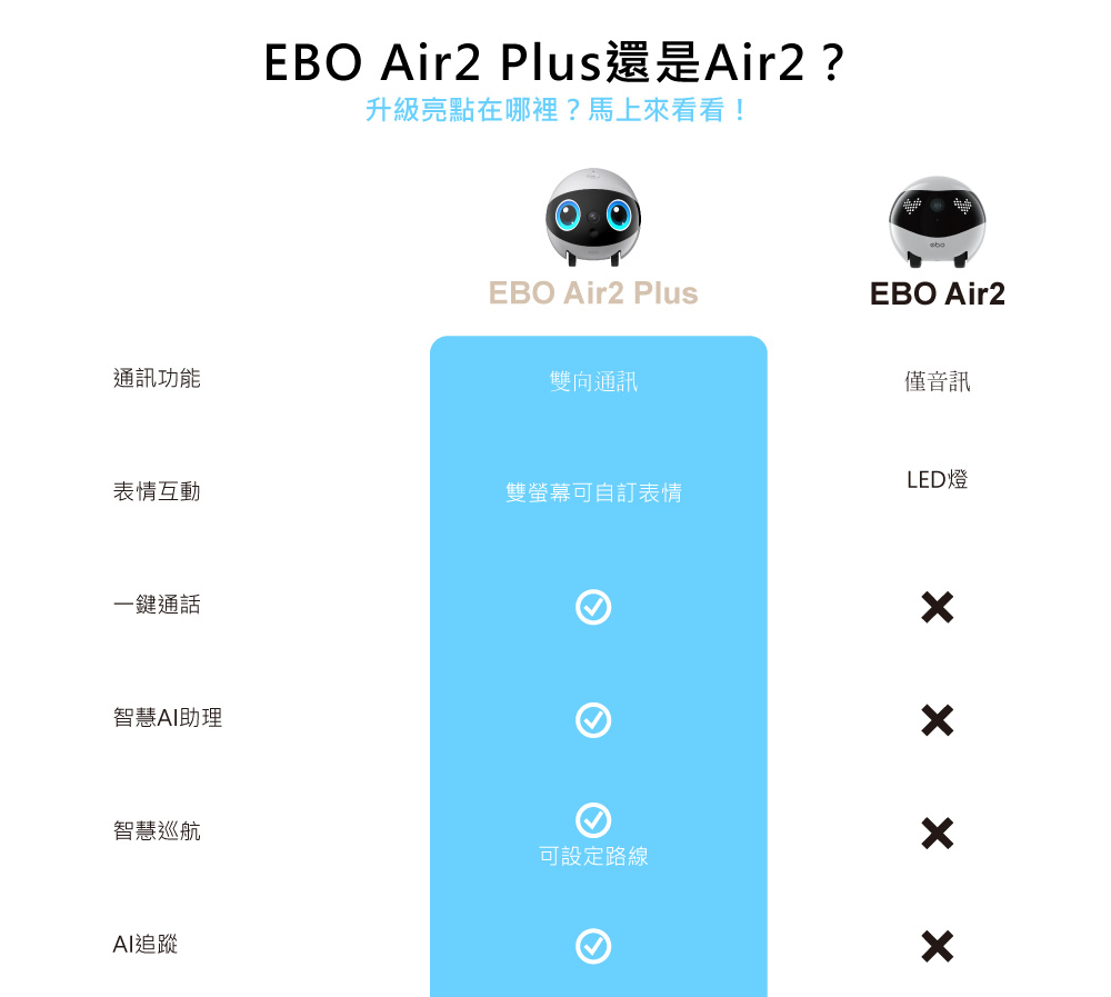 ◾超清3K畫質◾可自訂多種表情顯示◾即時反應的ChatGTP多模組助理◾雙向音訊互動◾全屋靈活移動◾不倒翁設計,穩定不翻倒◾智慧AI追蹤跟拍◾持久續航電池◾NCC認證:CCAH25LP8930T2◾BSMI 認証字號:R3D004