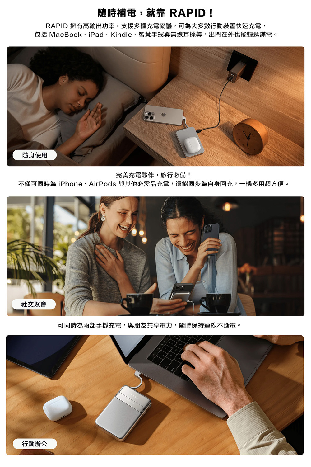 30W 內建線材超快充:內建 30W 快充線,無需額外攜帶傳輸線,隨插即用,隨時享受磁吸便利與極速充電體驗。