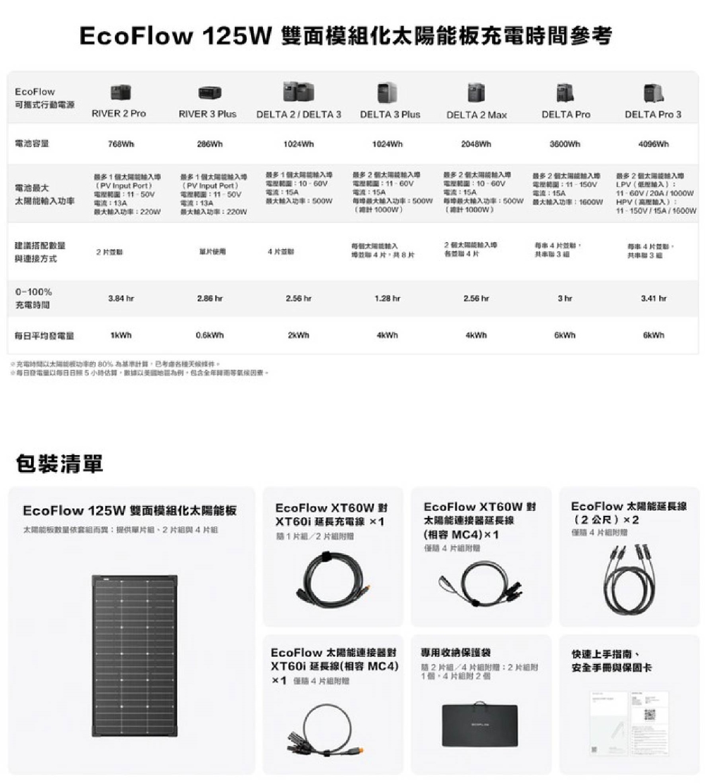 【固士特】EcoFlow 125W 雙面太陽能板(2片)