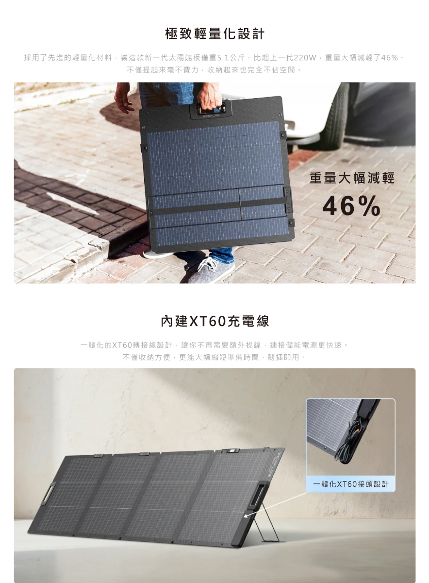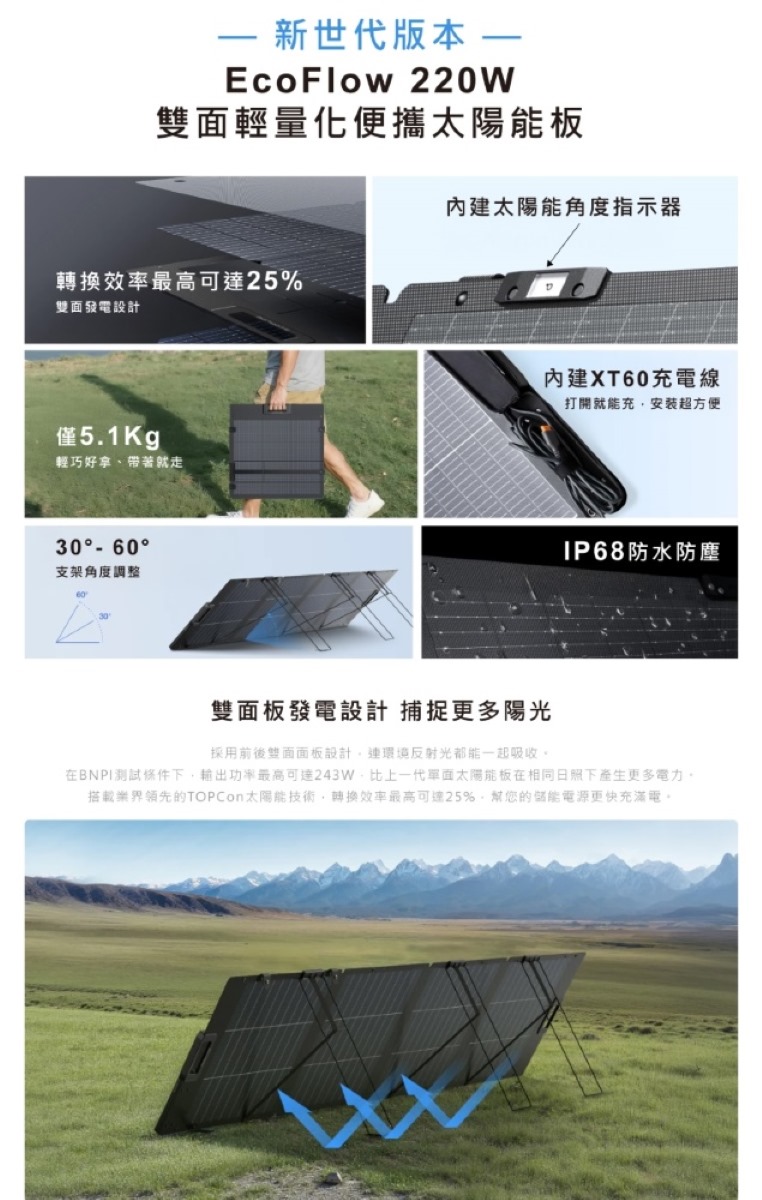 【EcoFlow 220W 單面便攜太陽能板(新世代版本)】