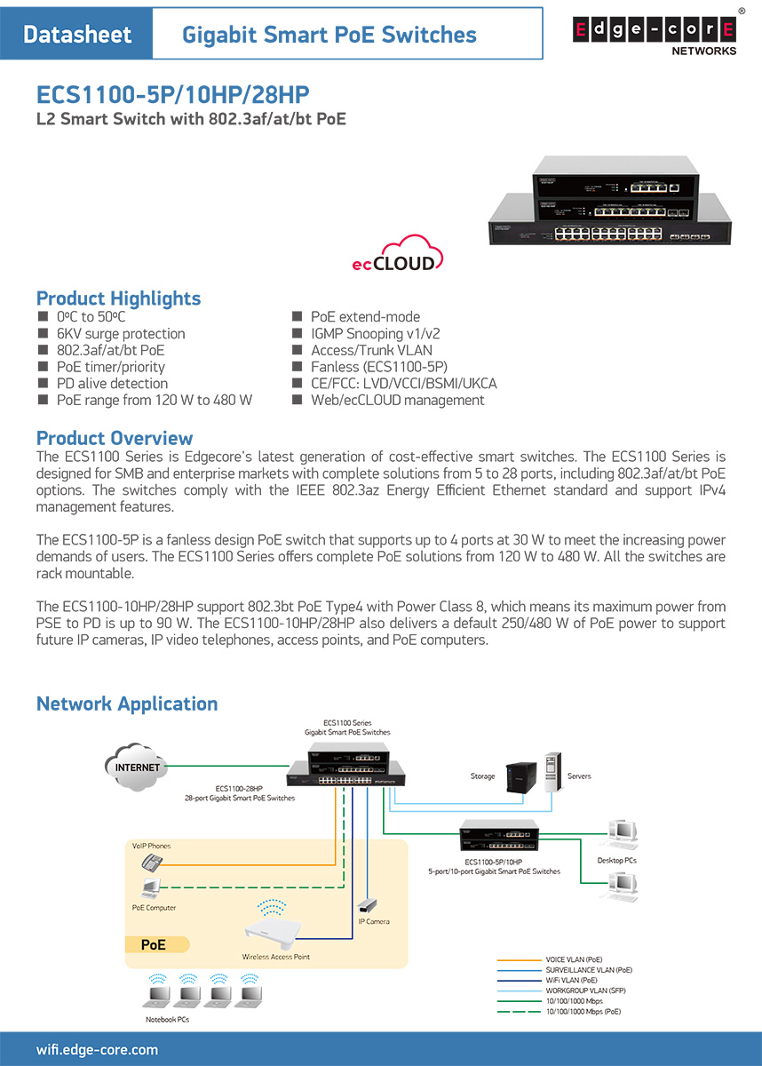 昌運監視器 Edge-corE Edgecore ECS1100-28HP 24埠智慧網管型PoE交換器