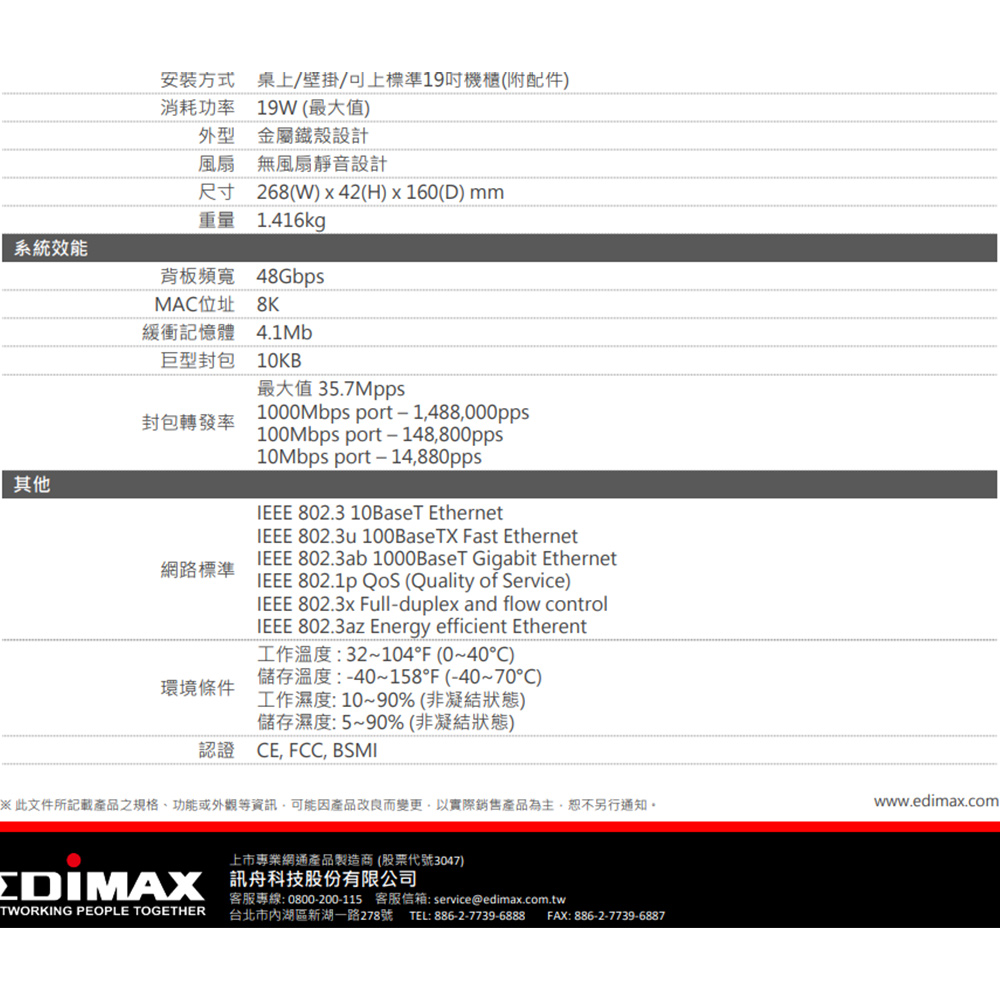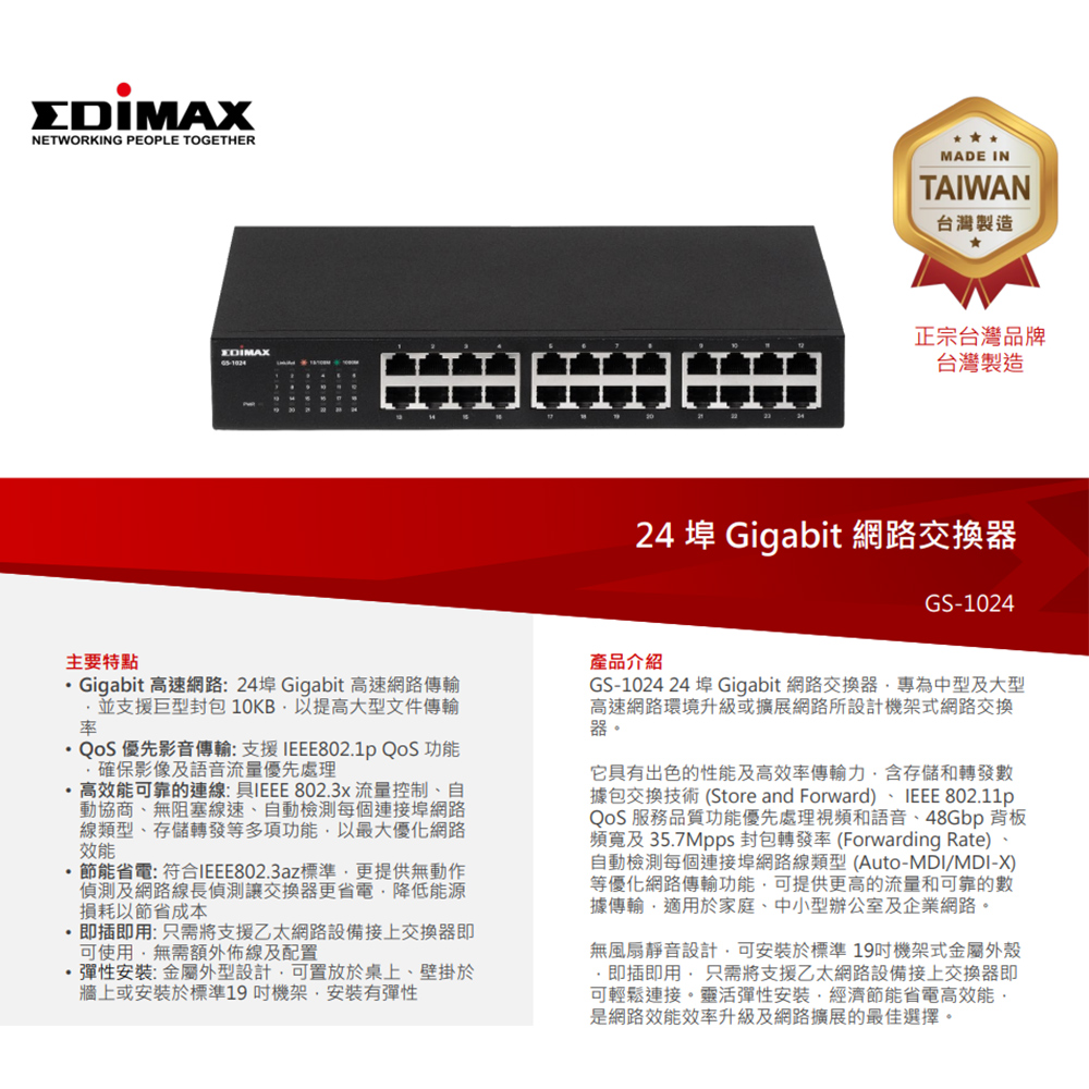 昌運監視器 EDIMAX 訊舟 GS-1024 (MIT) 24埠 Gigabit 網路交換器