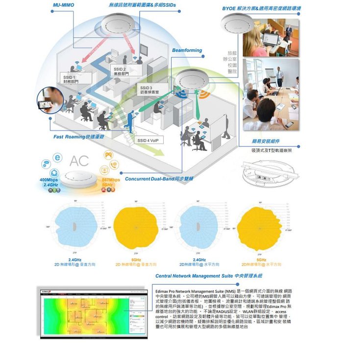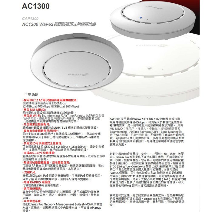 昌運監視器 EDIMAX 訊舟 CAP1300 AC1300 Wave2長距離吸頂式無線基地台
