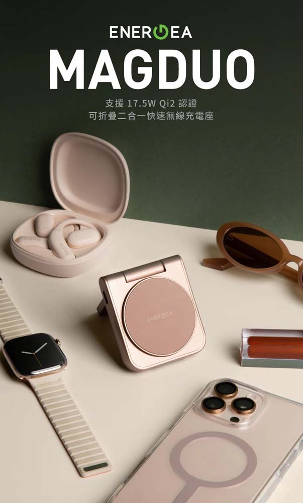 【山水之寶】MagDuo 二合一 Qi2折疊磁吸無線充電座 無線充電 Magsafe 手機 手錶-金色
